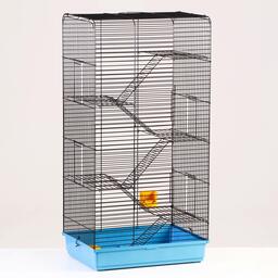 Клетка-вольер для животных (хорьков, белок, шиншилл, крупных дегу, крыс) с выдвижным пластиковым поддоном с высокими бортиками, который максимально упрощает процесс уборки. На фасаде клетки имеются две большие удобные дверцы с надежными запирающими механизмами.
