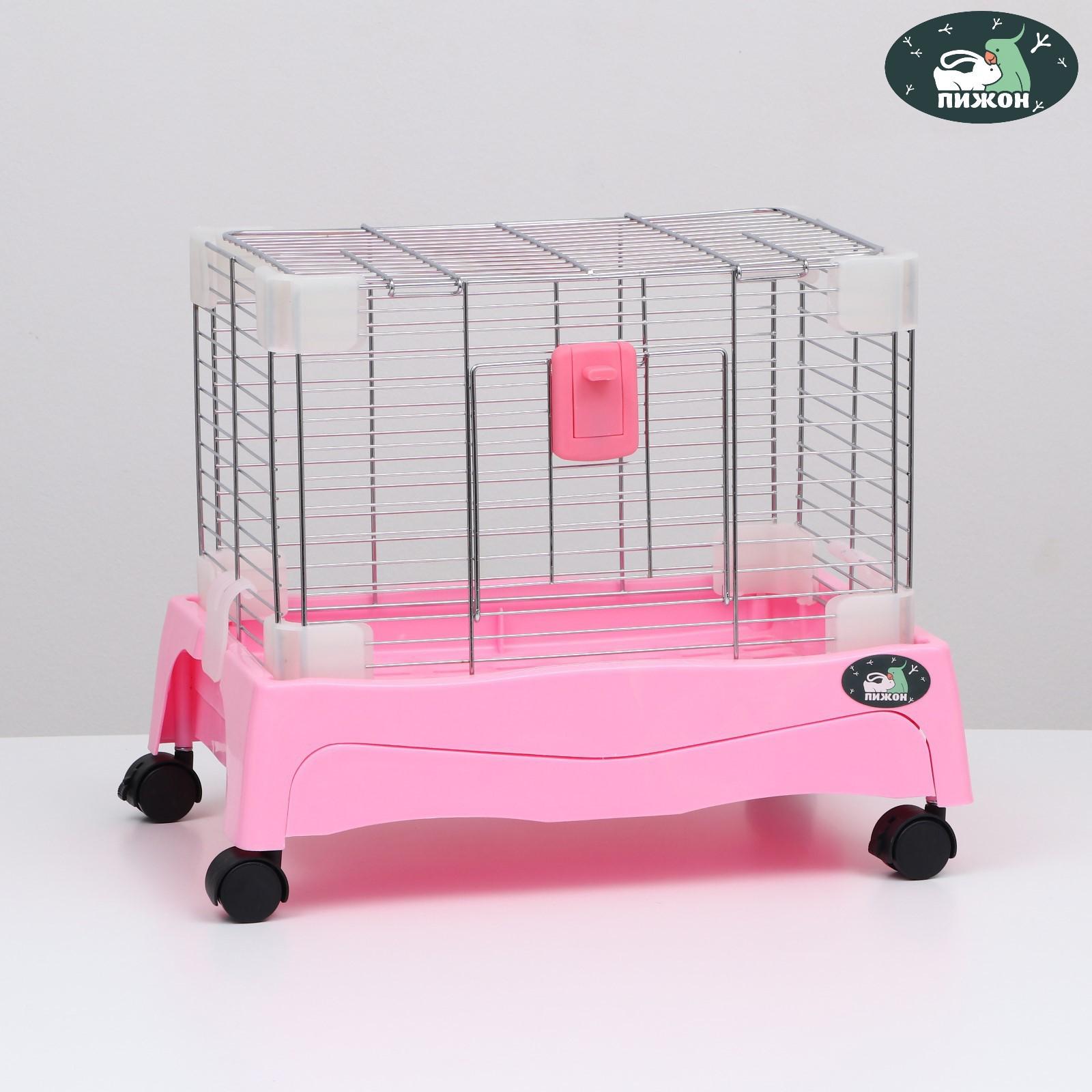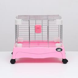 Клетка для грызунов с колёсами и выдвижным поддоном, 49 х 33 х 37 см, розовая
