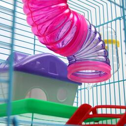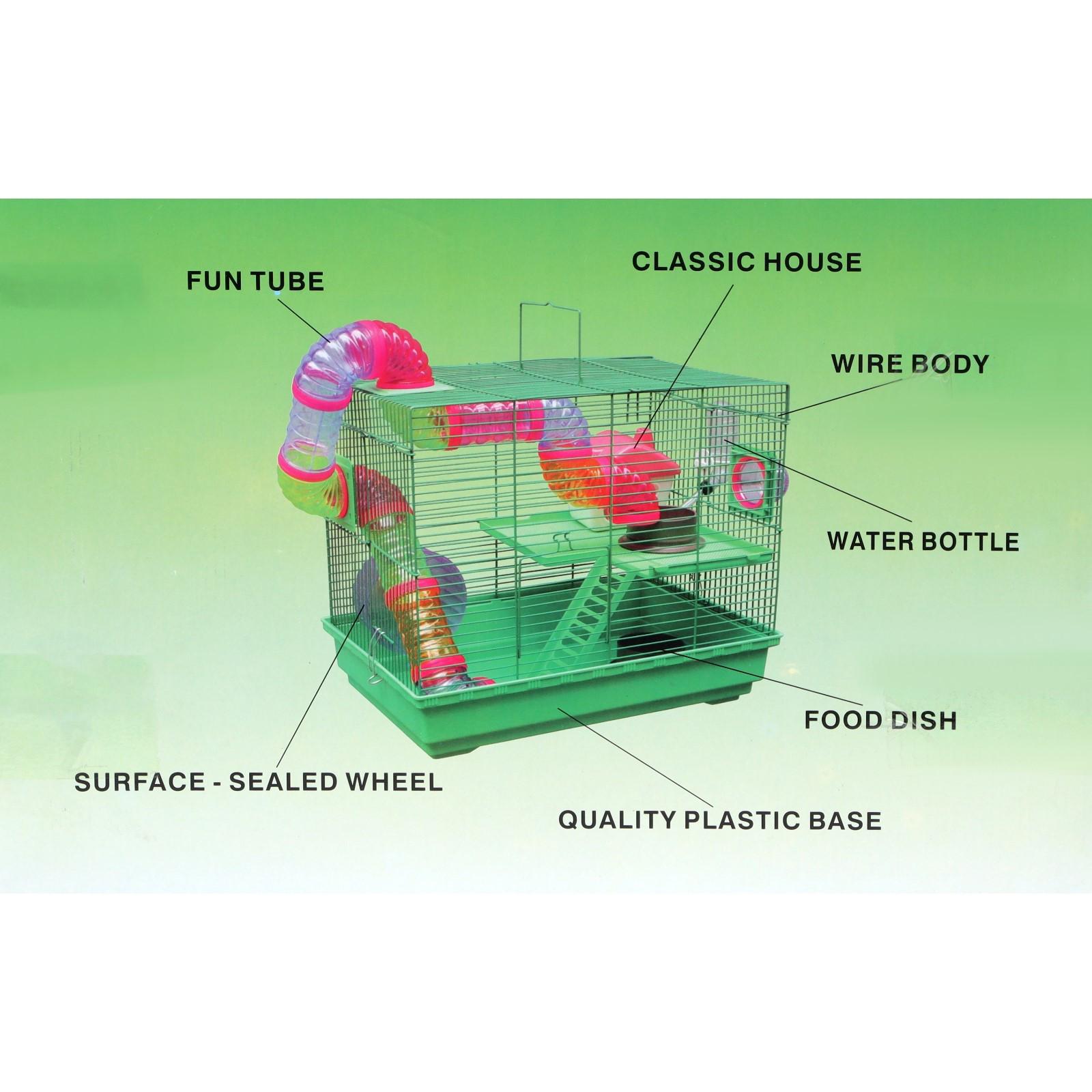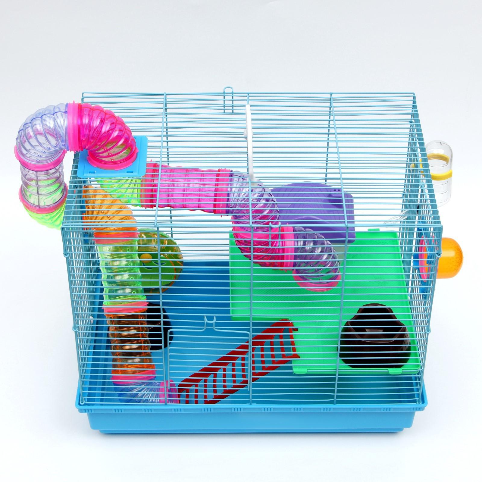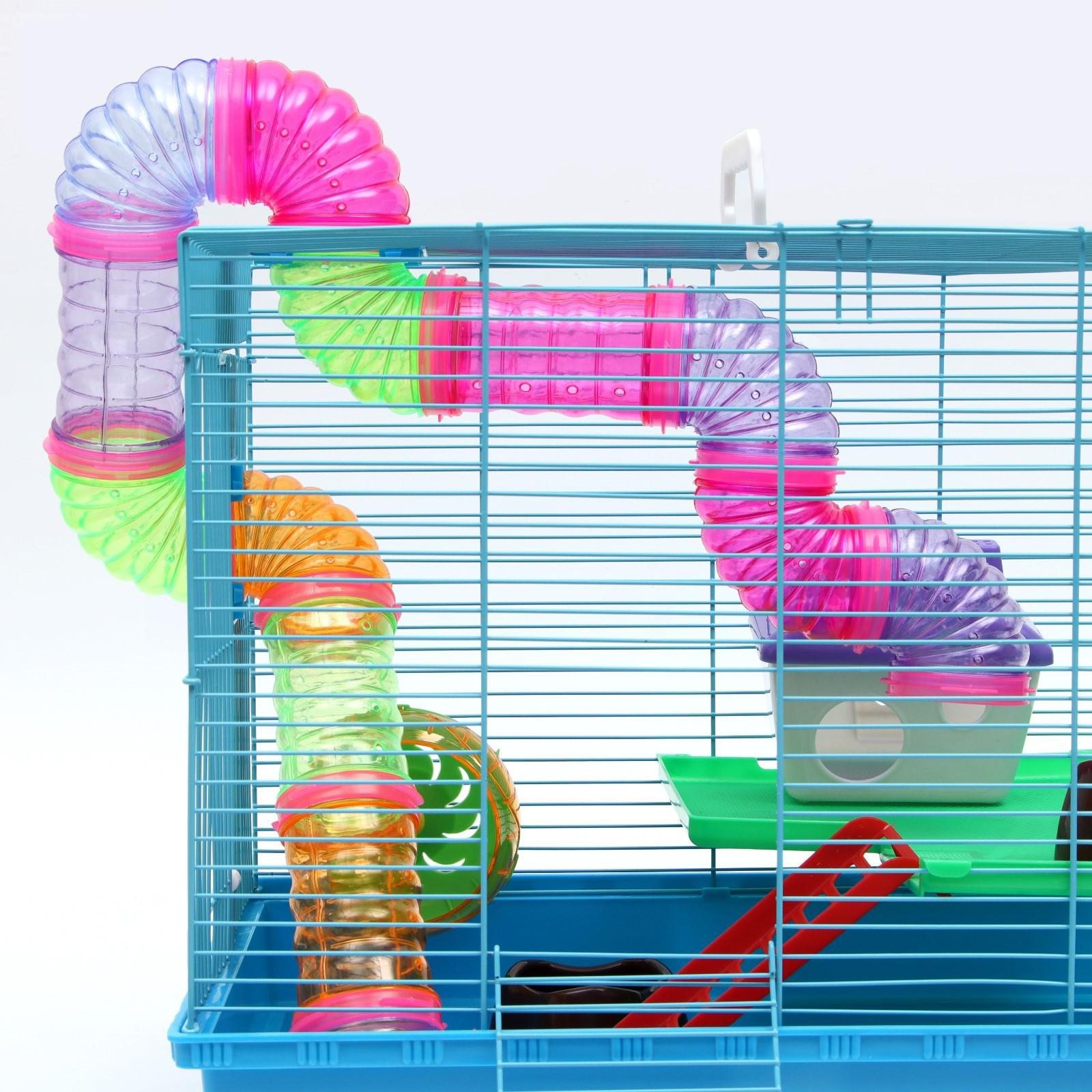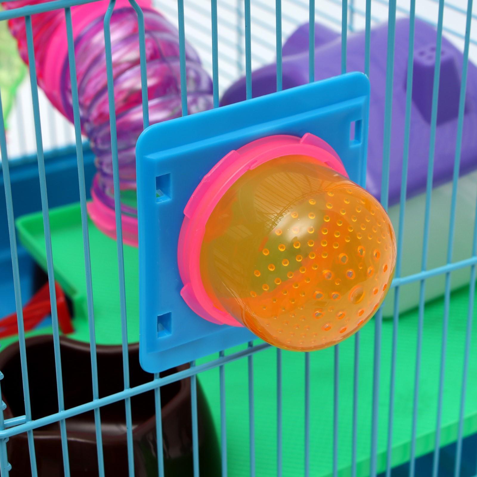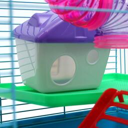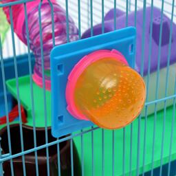 Яркая и просторная клетка с прочным металлическим каркасом - то, что нужно любому грызуну. Она не занимает много места и отлично подходит для мелких домашних животных вроде крыс, мышей и хомяков.