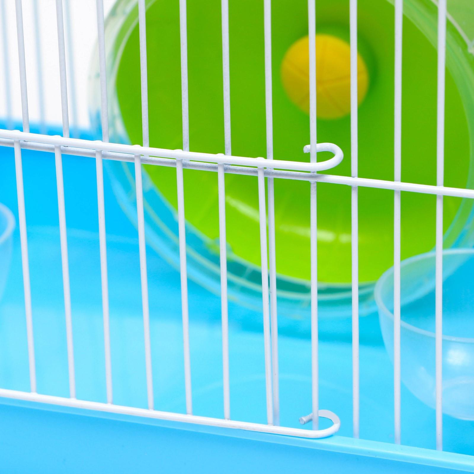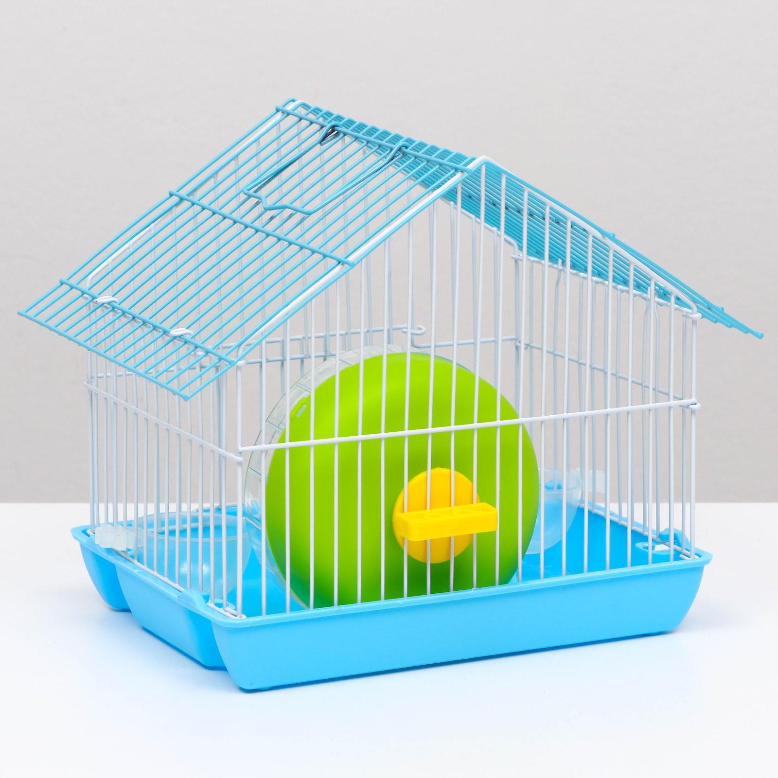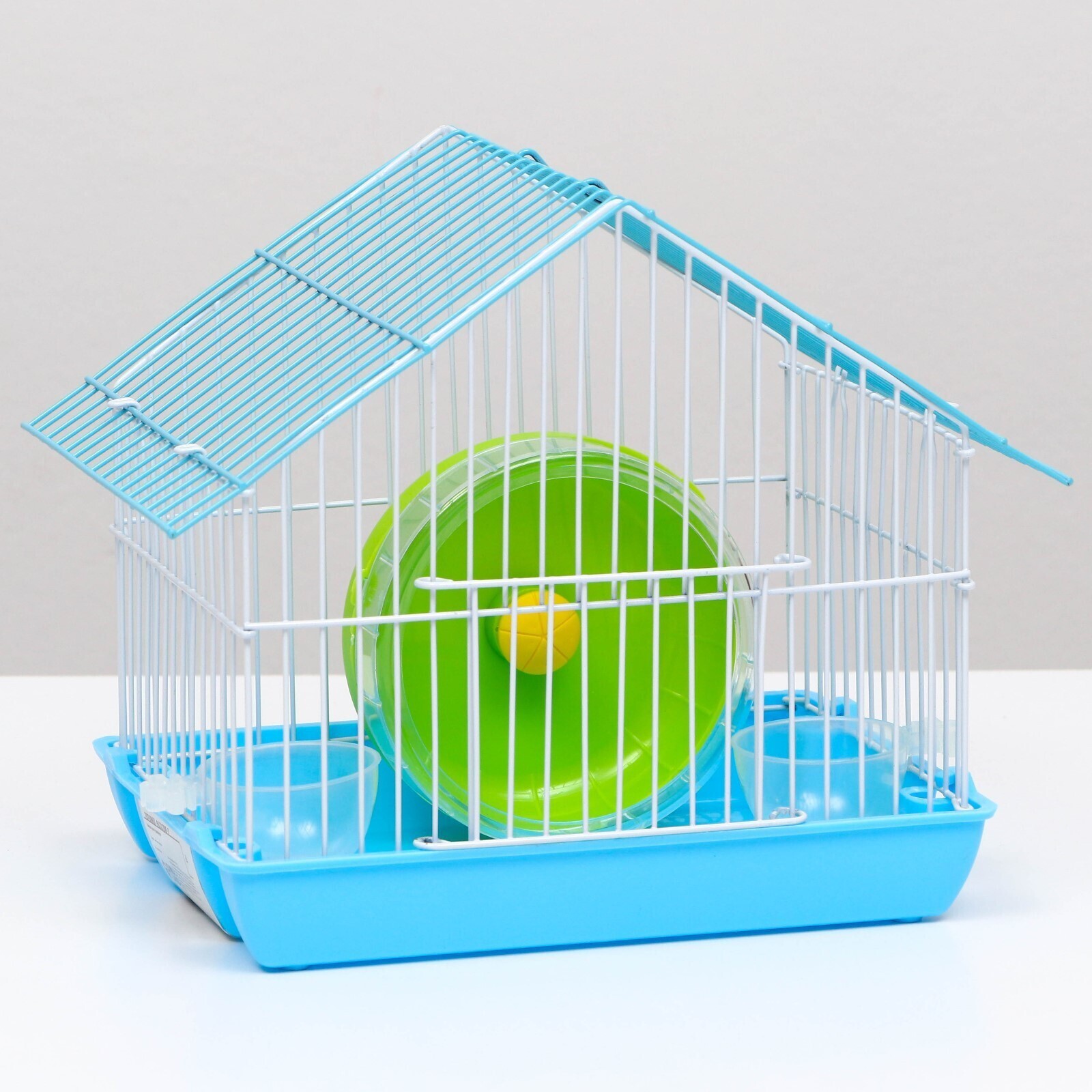 Клетка для грызунов с колесом и поилками, 22 х 16 х 20 см, голубая