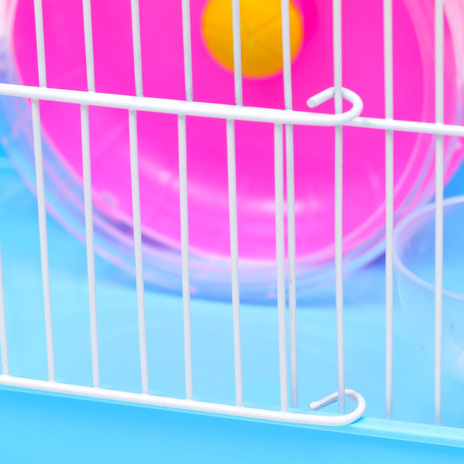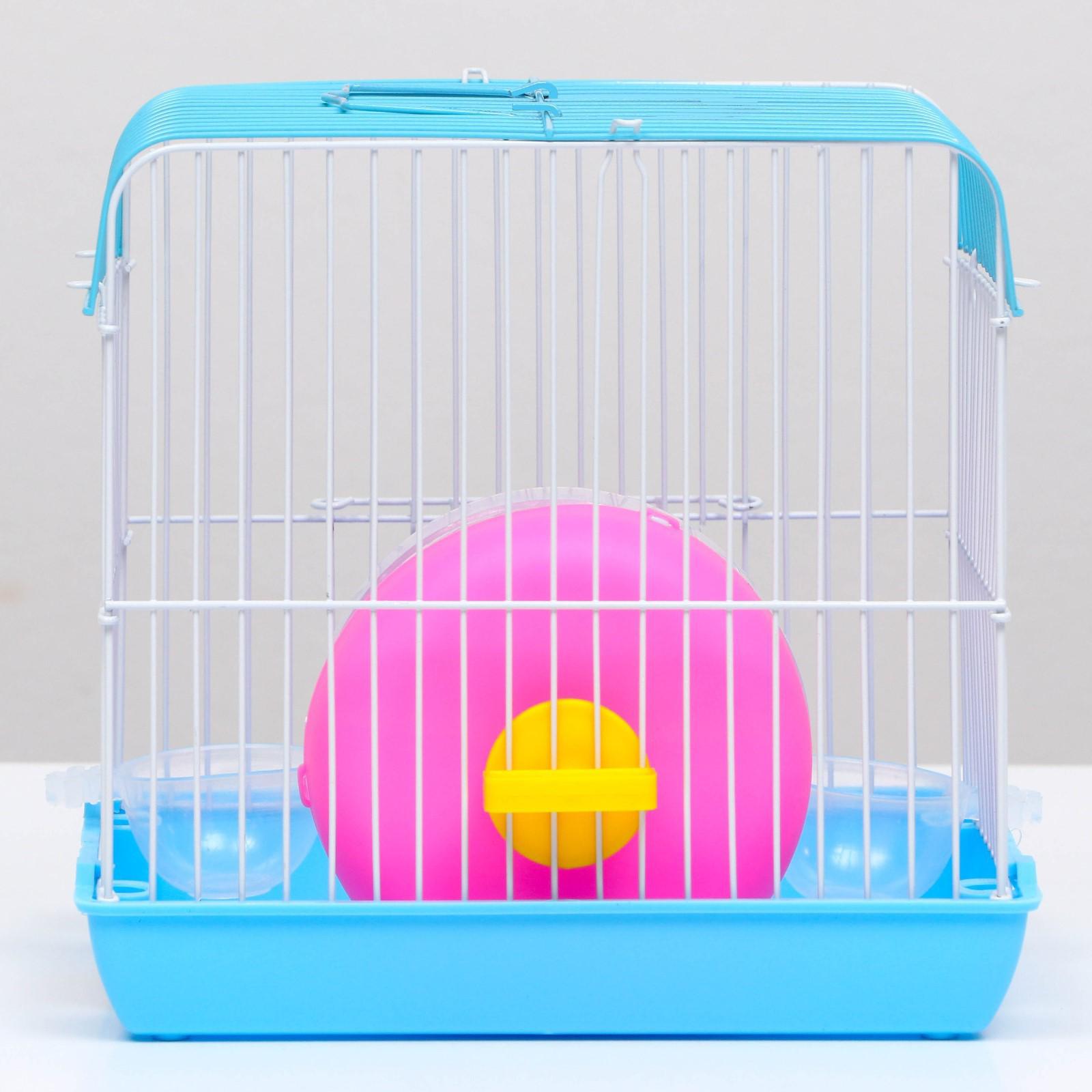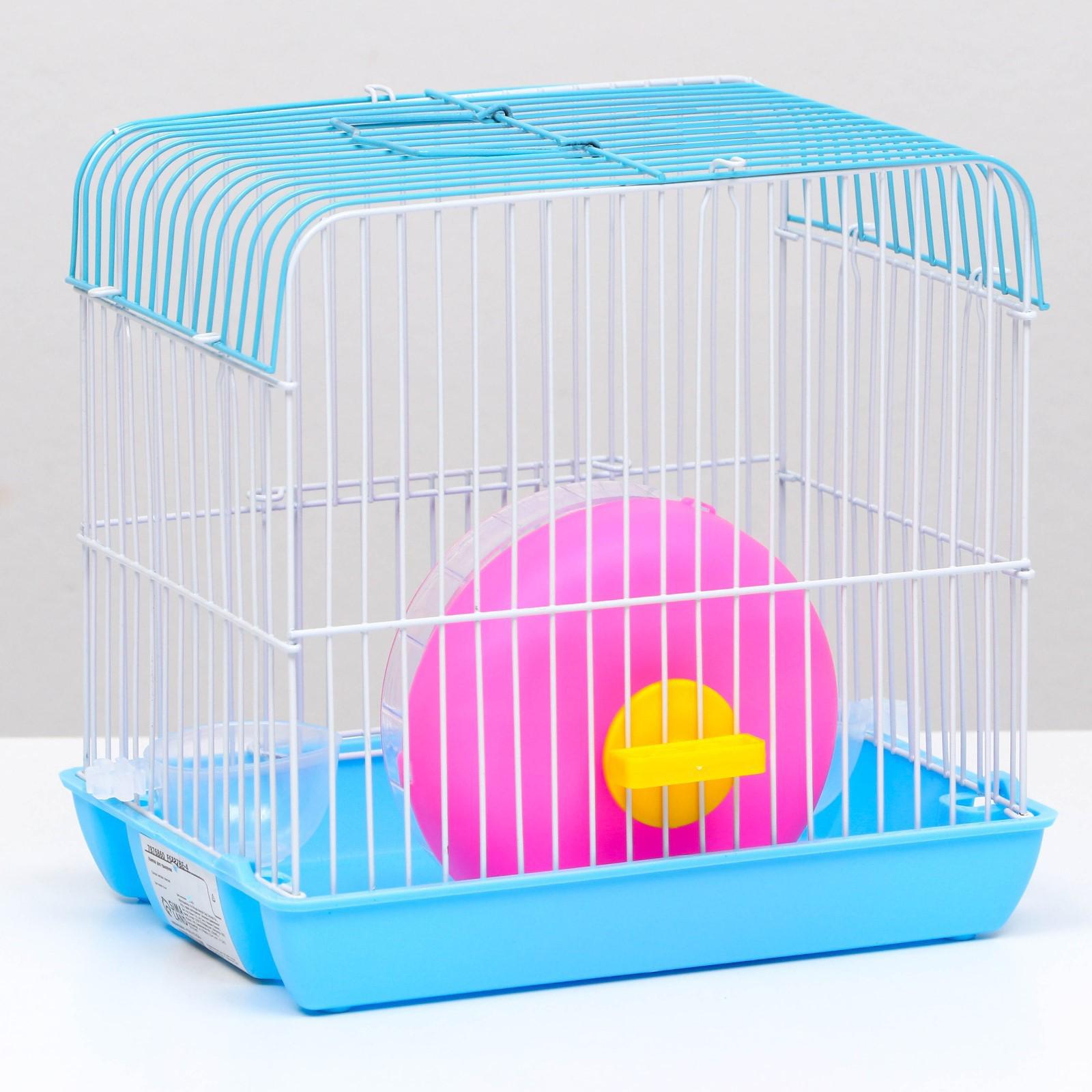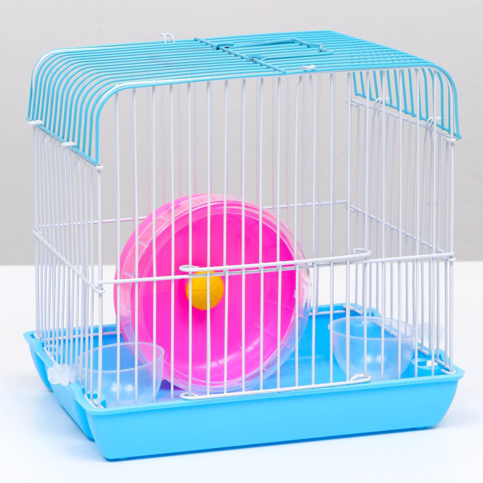 Клетка для грызунов с колесом и поилками, 22 х 16 х 20 см, голубая