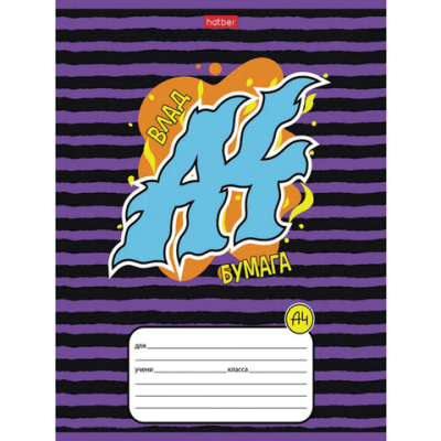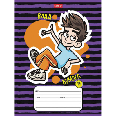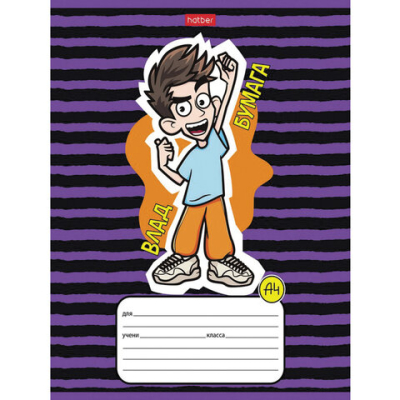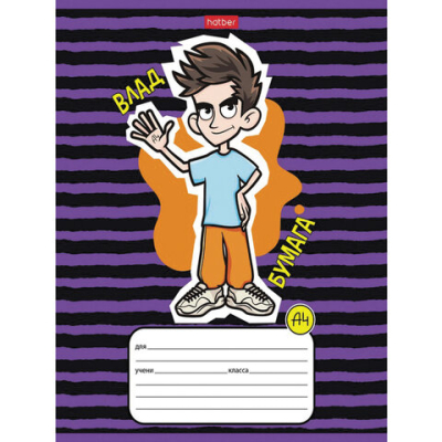 Тетрадь 12 л., HATBER, клетка, обложка картон, "Влад А4" (5 видов в спайке), 12Т5В1