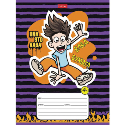 Тетрадь А5 формата. Внутренний блок состоит из 12 листов офсетной бумаги плотностью 60 г/м2. Линовка - клетка, есть поля. Обложка изготовлена из импортного мелованного картона. Скоба надежно скрепляет листы между собой.