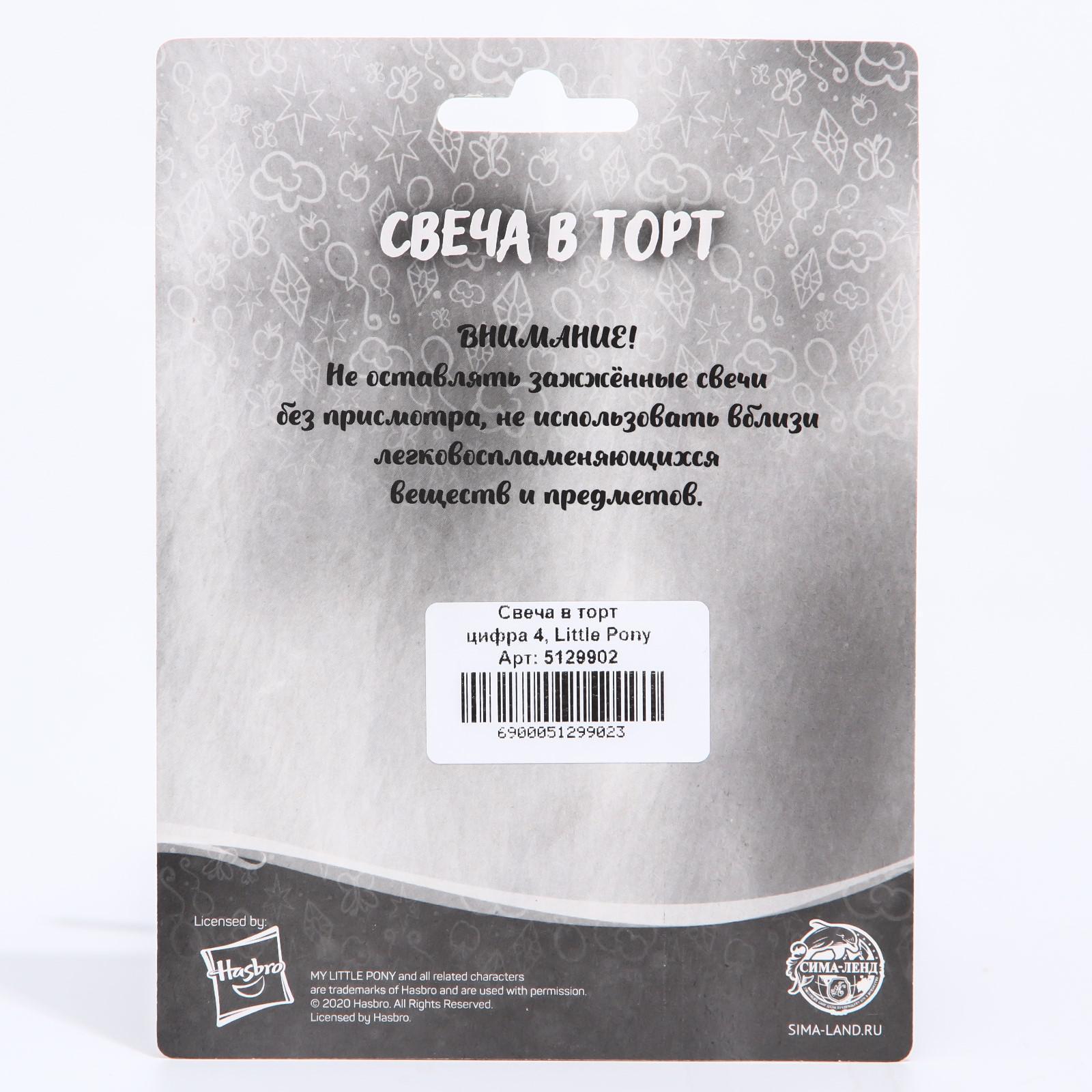 Свеча в торт цифра 4, Little Pony