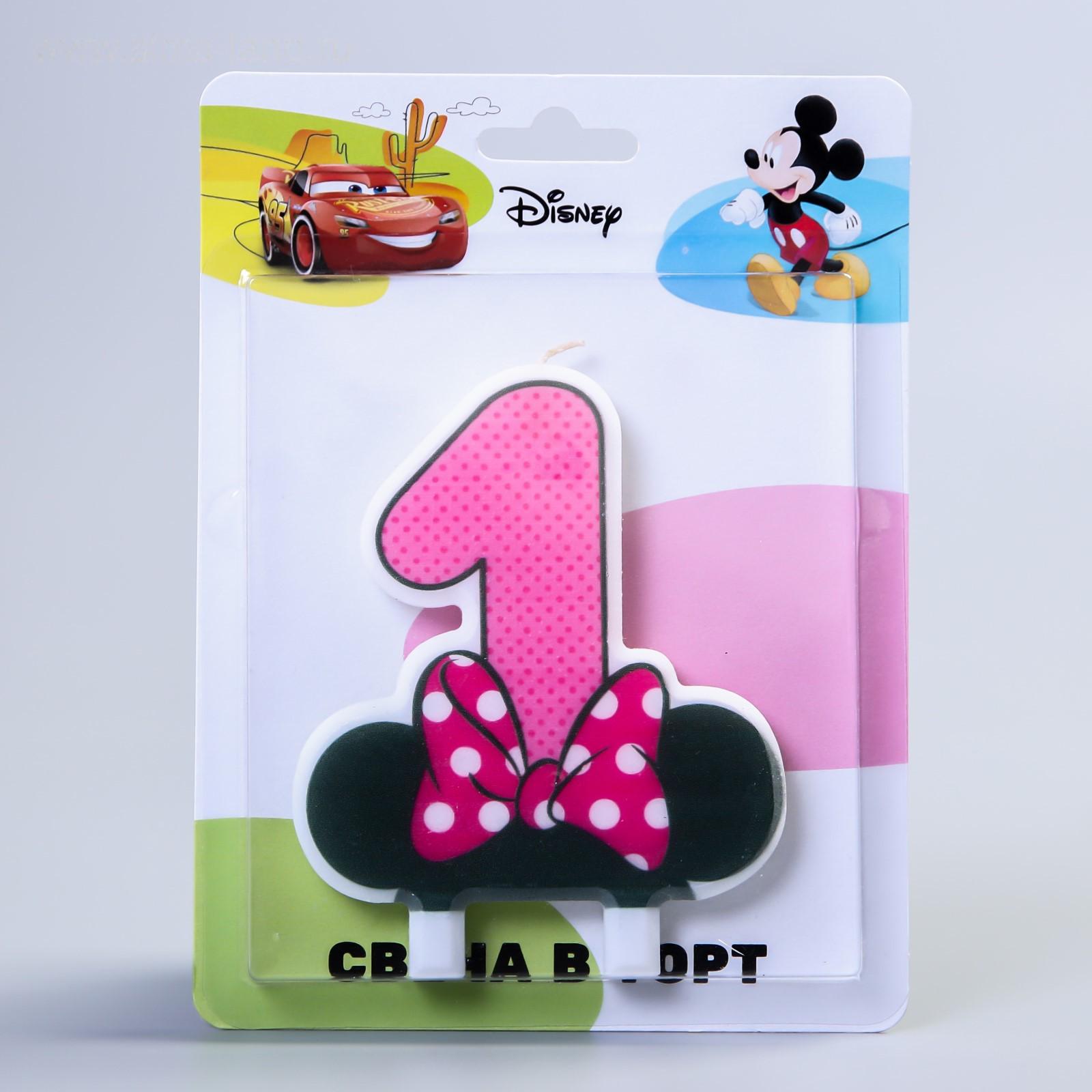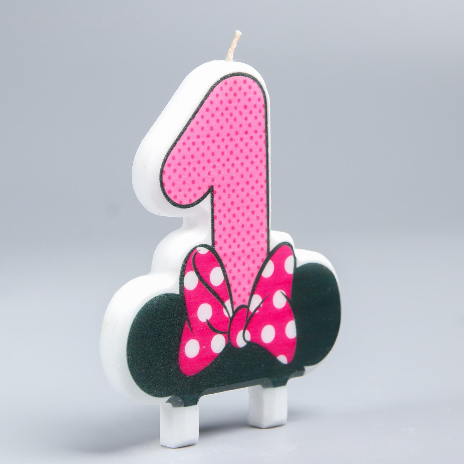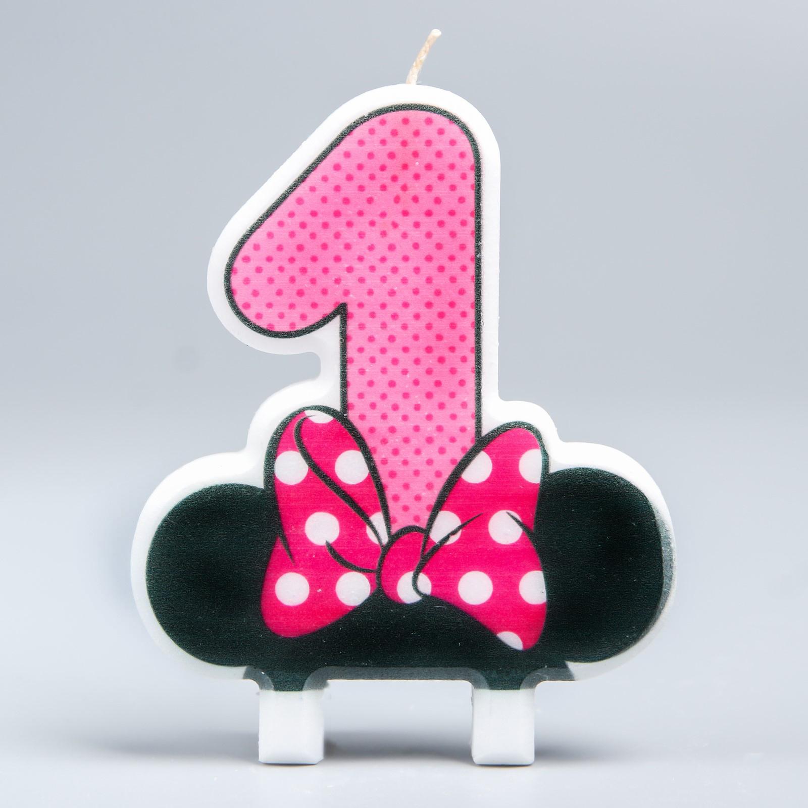 Свеча в торт "Цифра 1", Минни Маус бантик, 80х100
