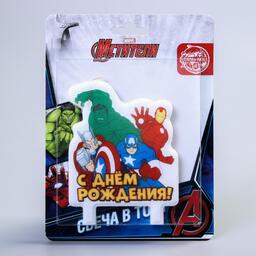 Свеча в торт «С Днём Рождения!», Мстители: Железный человек, Тор, Халк, Капитан Америка, 75 х 100 мм