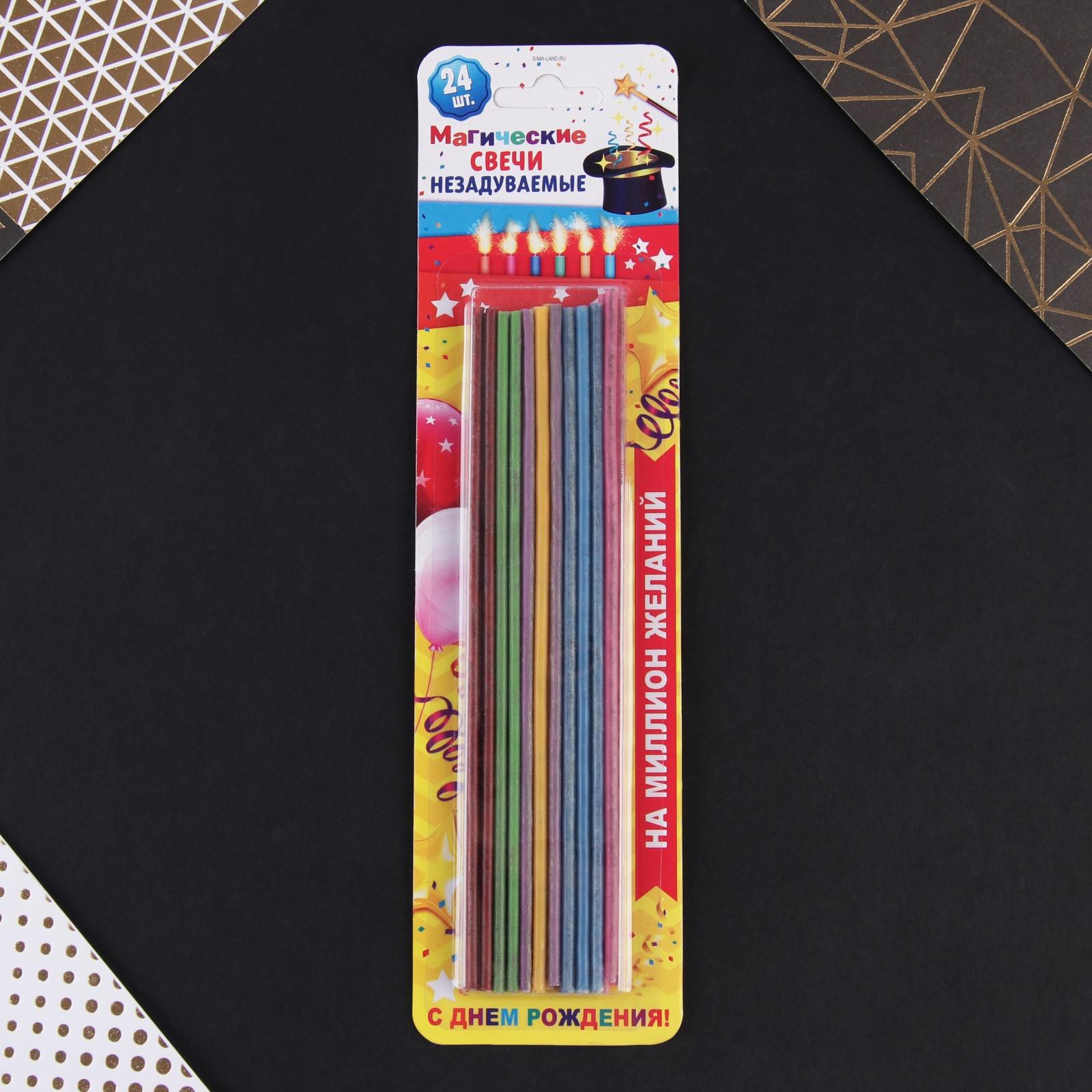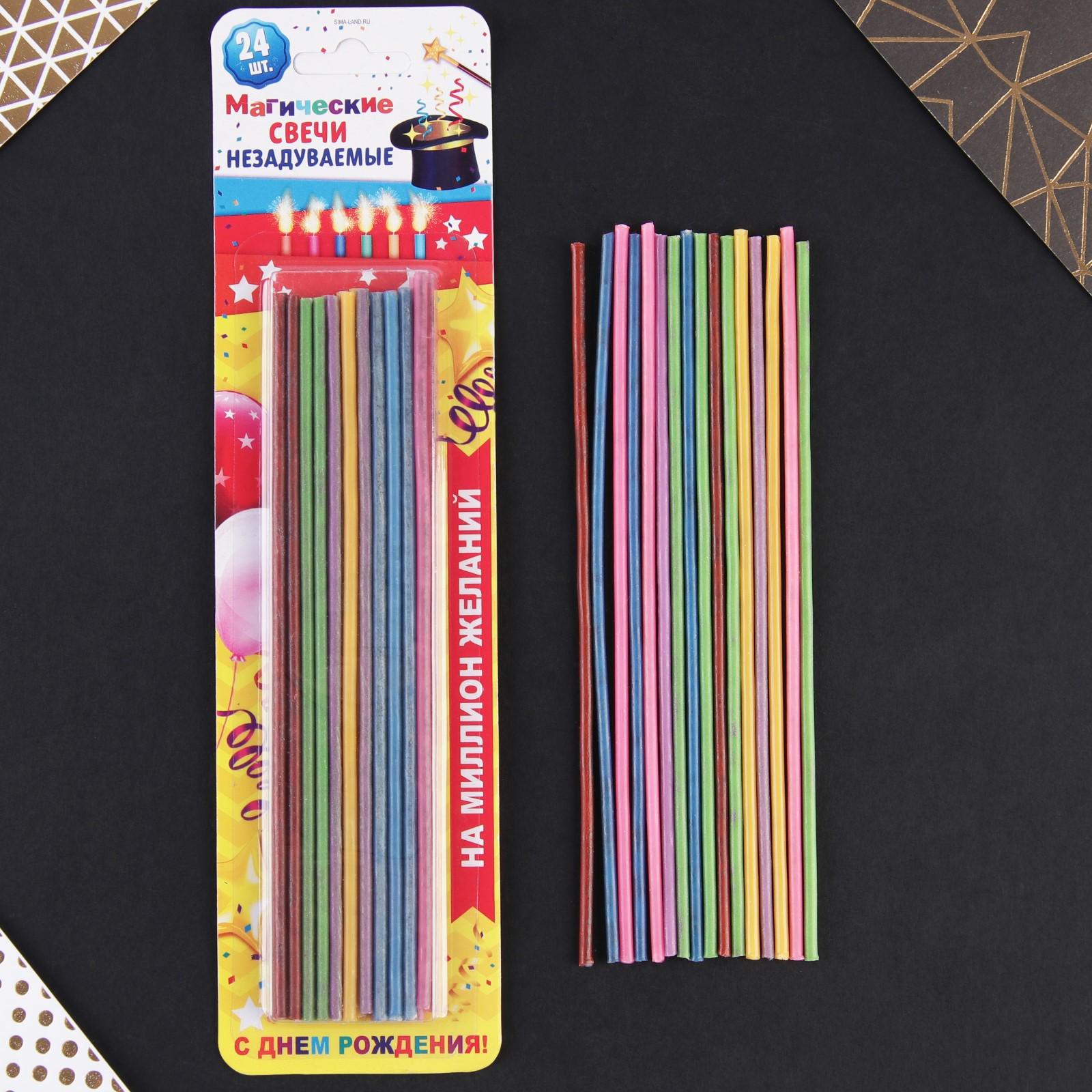 Свечи в торт незадуваемые «Разноцветные», 24 шт.