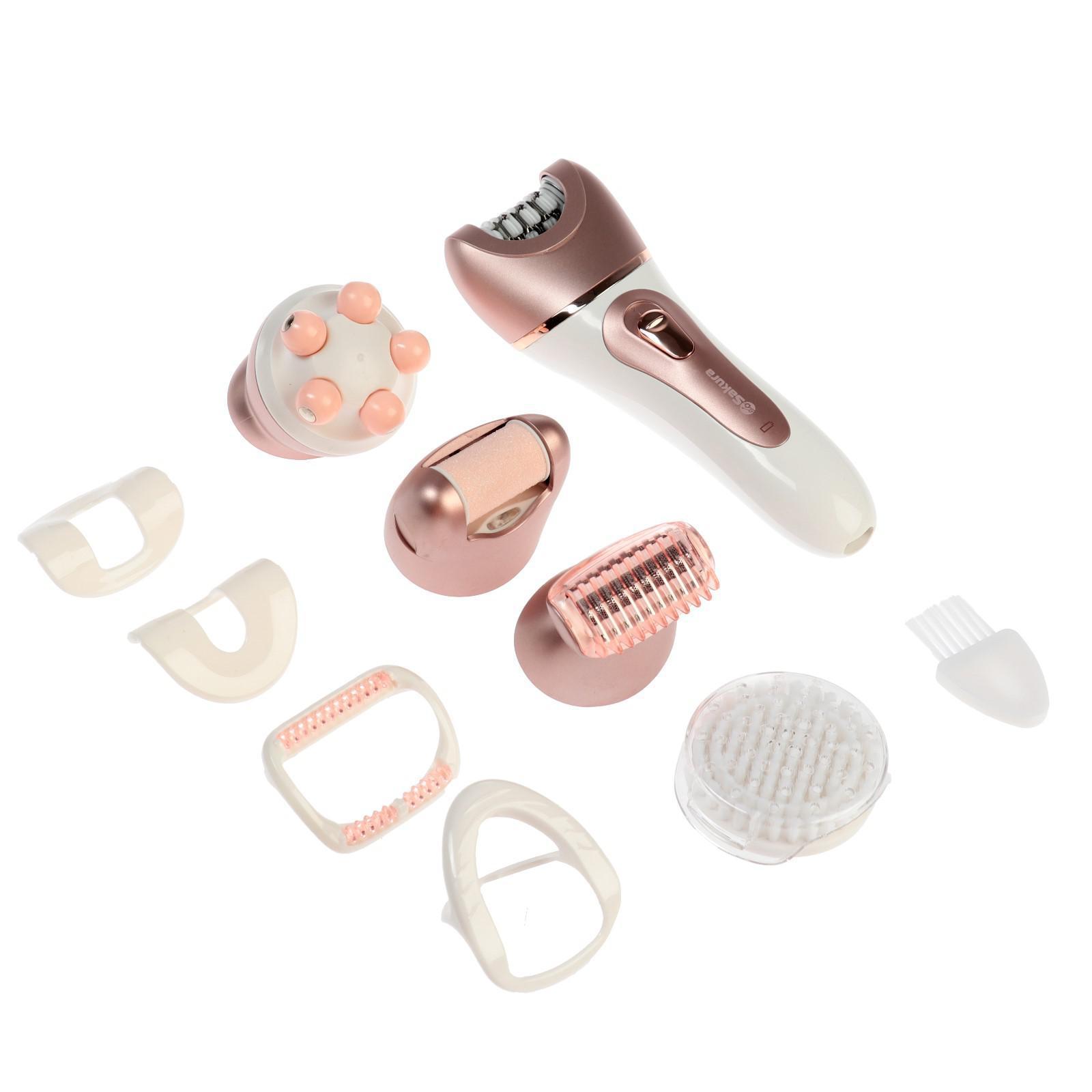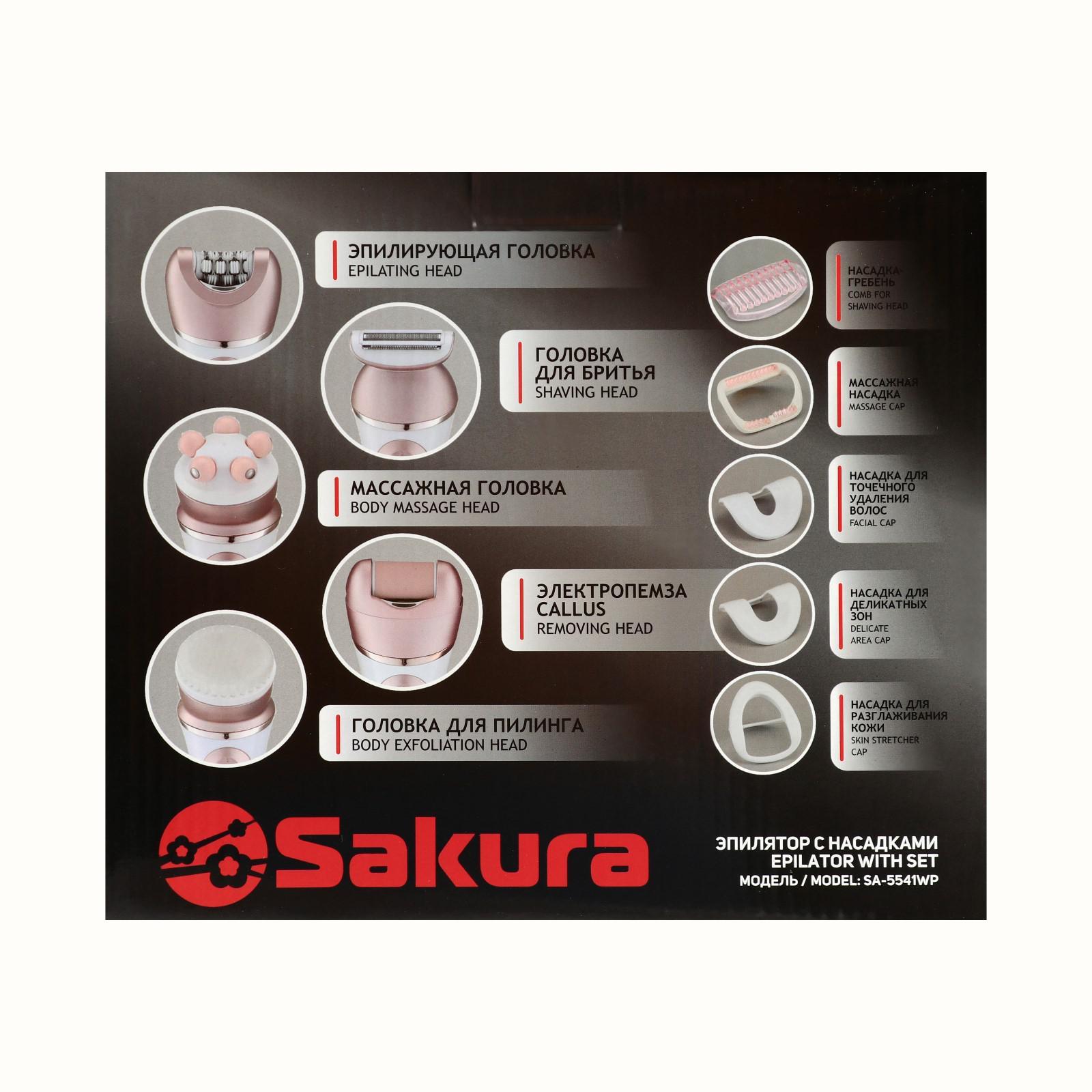 Эпилятор Sakura SA-5541WP, 10 насадок, 2 скорости, подсветка, АКБ, розово-белый