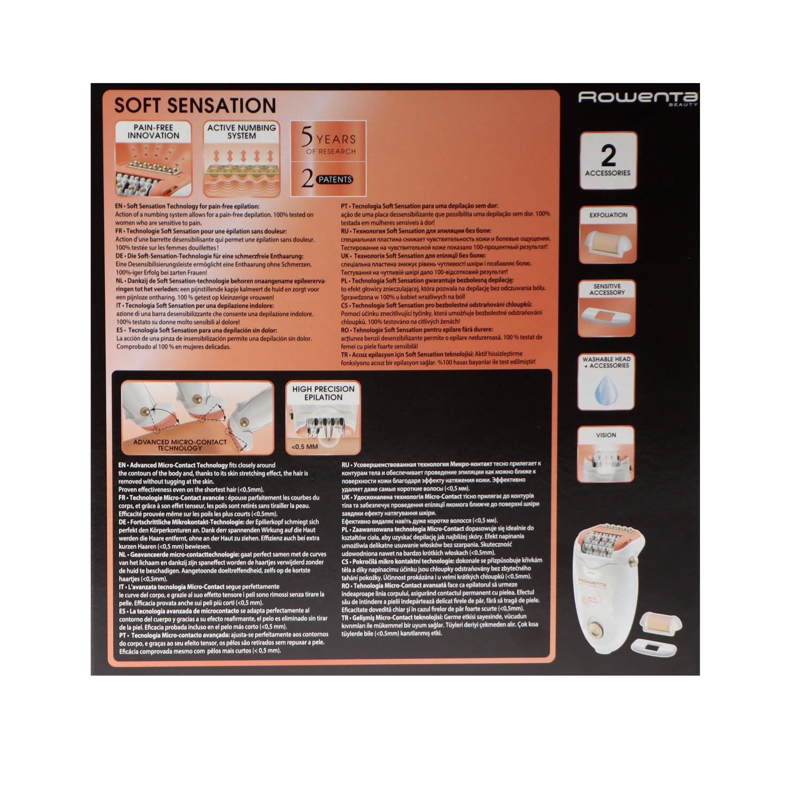 Эпилятор Rowenta EP5700F1 – это неповторимое сочетание нежного, женственного дизайна и передовых технологий. Ключевой особенностью данной линейки является технология Pain-Free, она благодаря высокой частоте движения массажной пластины и многочисленным импульсам блокирует сигнал о боли и обеспечивает комфортное использование без раздражения и болевых ощущений. Подвижная головка с встроенной подсветкой повторяет контуры вашего тела и обеспечивает бережный уход за кожей. Специальная насадка для пилинга позволит удалить омертвевшие частички кожи и сохранить ее нежной и сияющей. Съемные насадки эпилятора просты в использовании, их легко менять и можно мыть под водой.