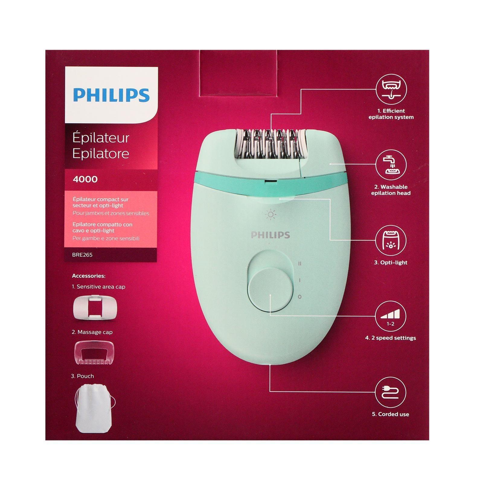 Эпилятор Philips BRE265/00, 5.4 Вт, 20 пинцетов, 2 скорости, от сети, цвет мятный