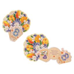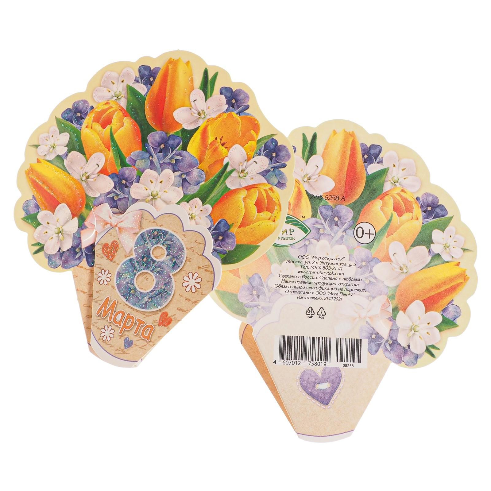 Открытка-мини двойная "8 марта" глиттер, желтые тюльпаны, 11,5 х 11 см
