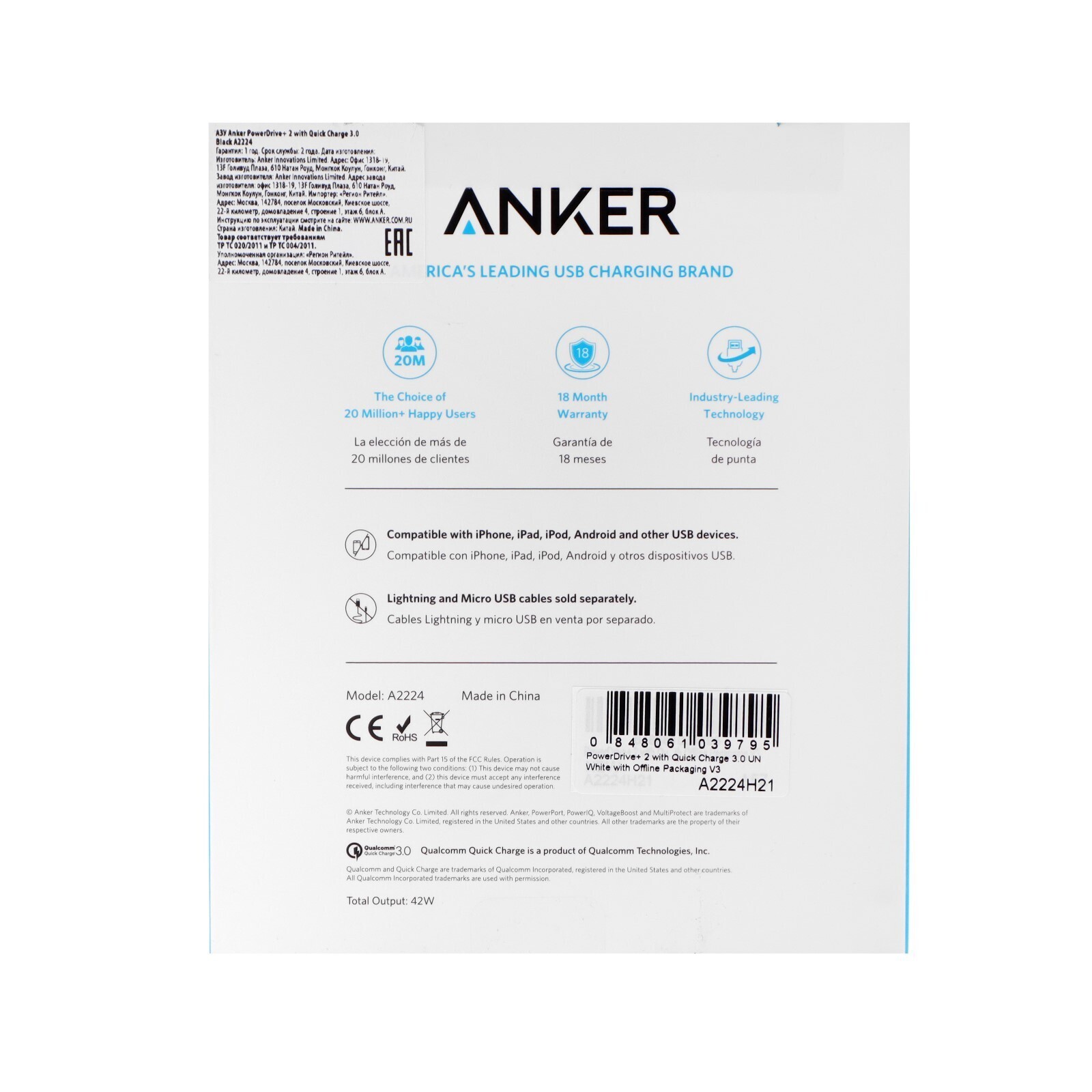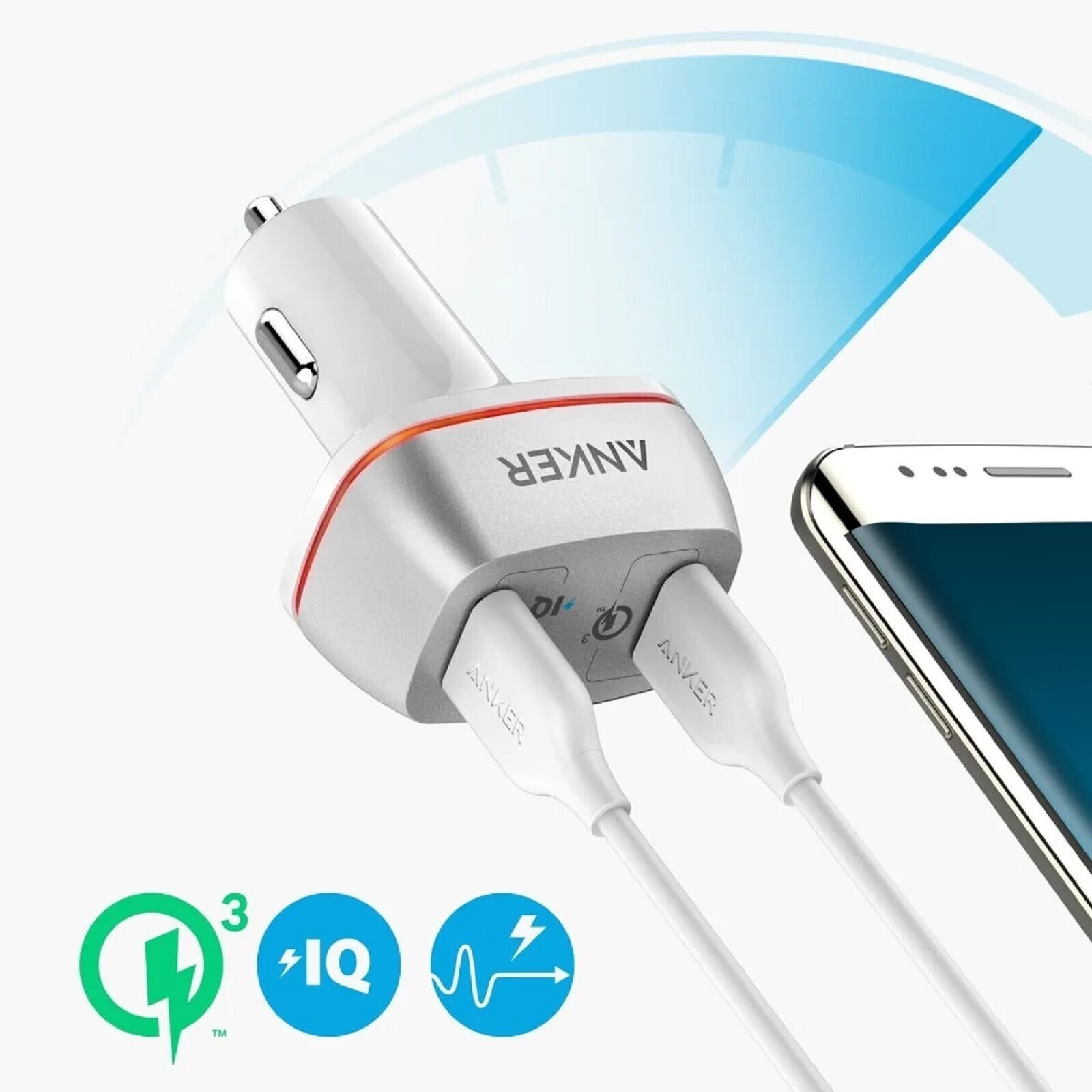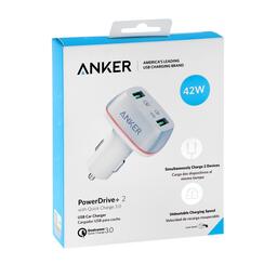 Автомобильное зарядное устройство Anker PowerDrive+ 2, 2 USB, 5.1 А, быстрая зарядкка, белое