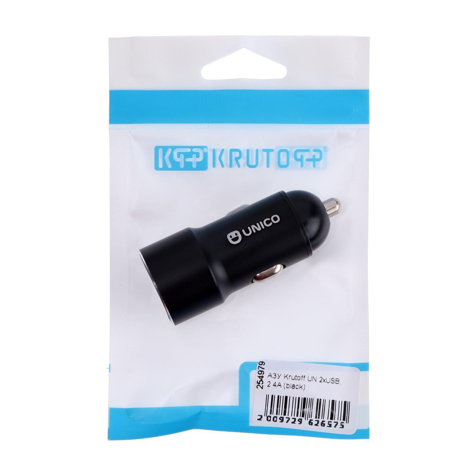 Автомобильное зарядное устройство Krutoff UN, 2xUSB, 2.4 A, черное