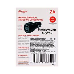 Автомобильное зарядное устройство Red Line Tech AC2-20, 2 USB, 2 А, черное