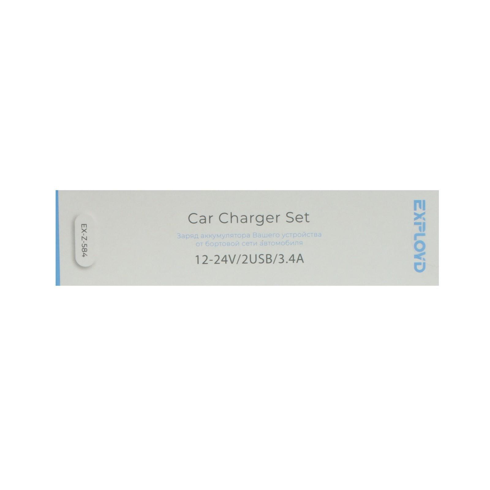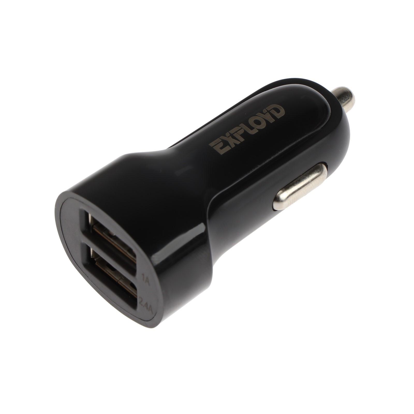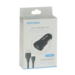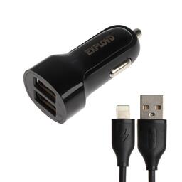 Автомобильное зарядное устройство Exployd EX-Z-584, 2 USB, 2.4А,кабель Lightning, 1м, черное