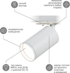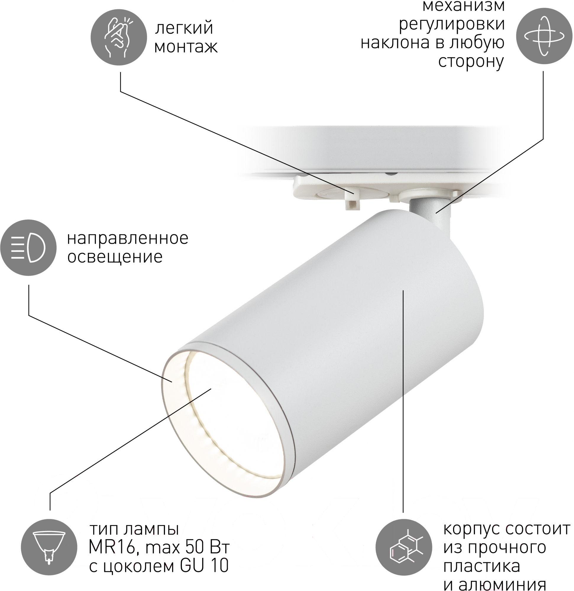 Трековый светильник ЭРА TR39-GU10 WH / Б0053309 (белый)