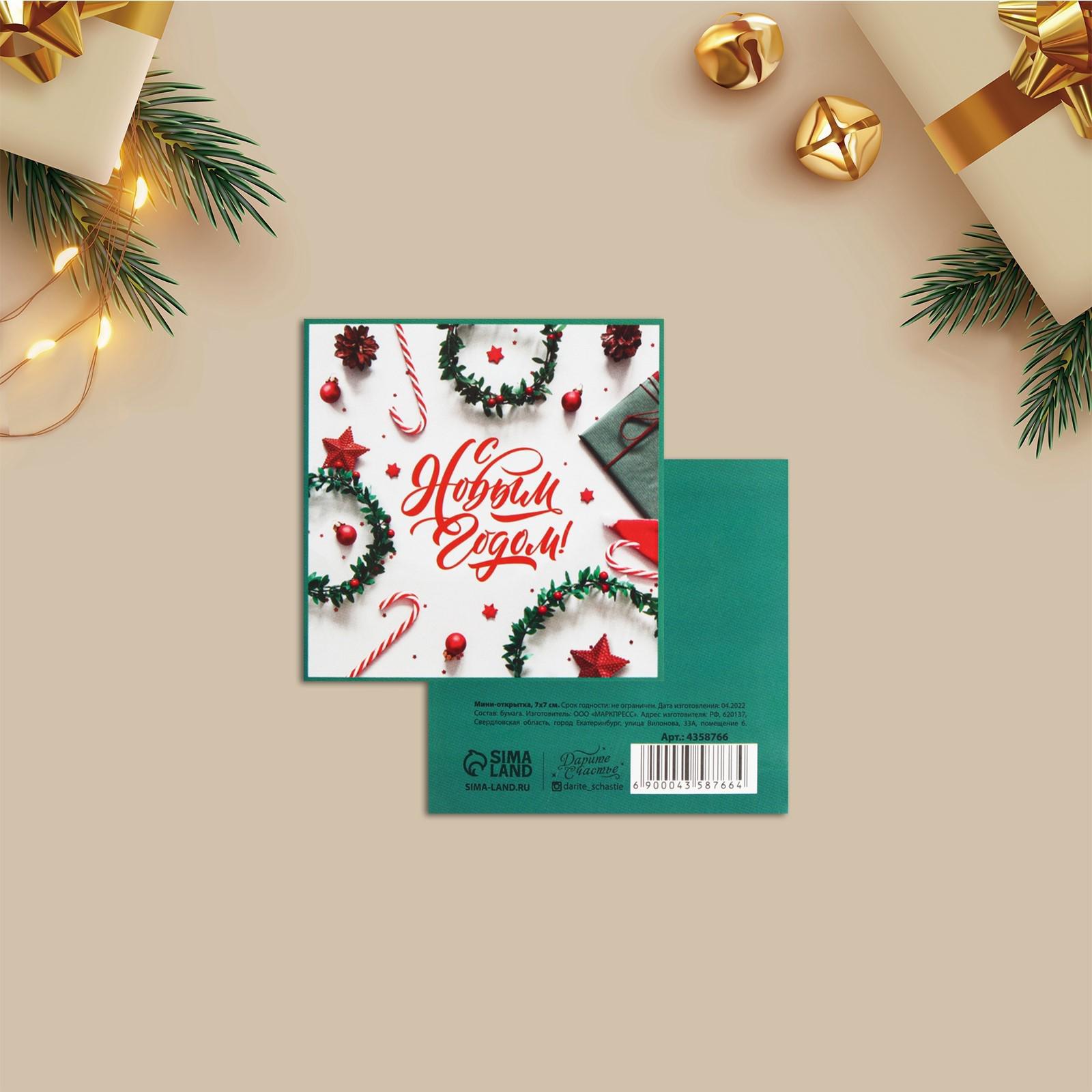 Мини-открытка «С Новым годом!» 7 × 7 см