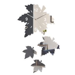 Часы - наклейка "Кленовый лист", 25 х 28 см, композиция 56 х 33 см, 1 ААА, серебро