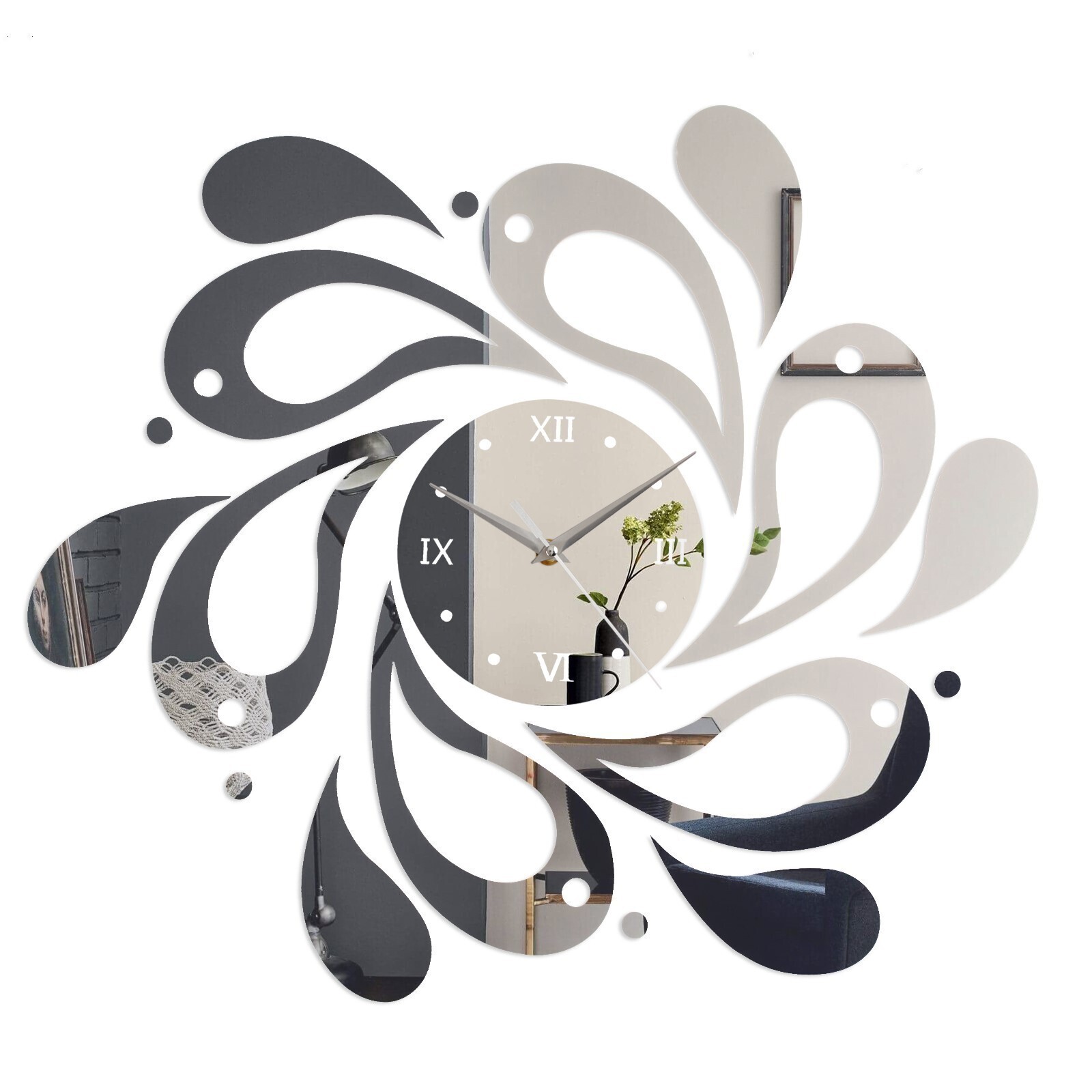 Часы - наклейка "Капли", 45 х 45 см, 1 ААА, серебро