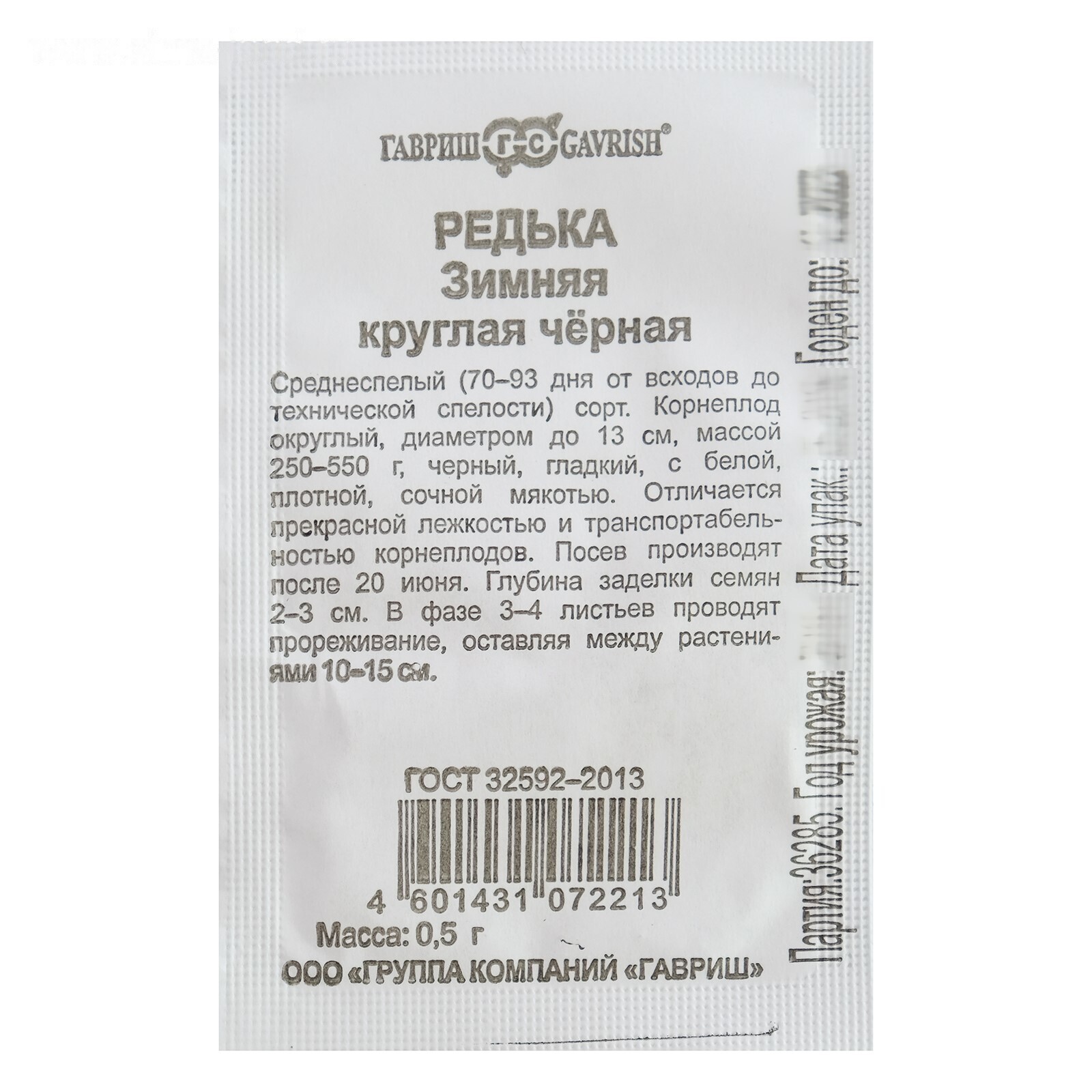 Семена Редька Зимняя круглая, чёрная, бп, 0,5 г