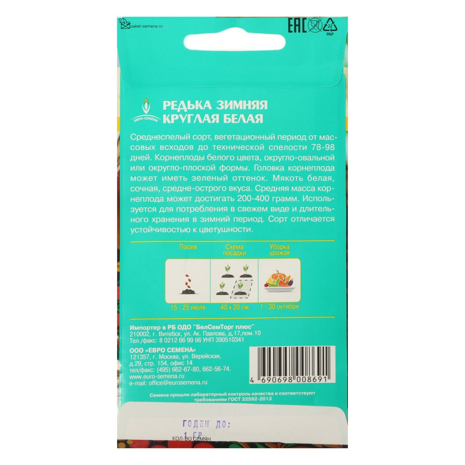 Среднеспелый сорт, вегетационный период от массовых всходов до технической спелости 78-98 дней. Корнеплоды белого цвета, округло-овальной или округло-плоской формы. Головка корнеплода может иметь зеленый оттенок. Мякоть белая, сочная, средне-острого вкуса. Средняя масса корнеплода может достигать 200-400 грамм. Используется для потребления в свежем виде и длительного хранения в зимний период. Сорт отличается устойчивостью к цветушности.
