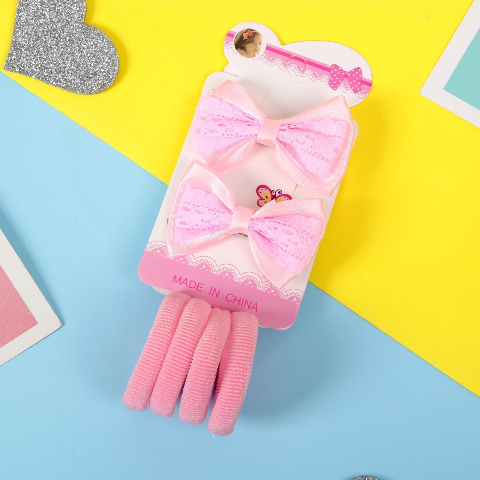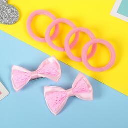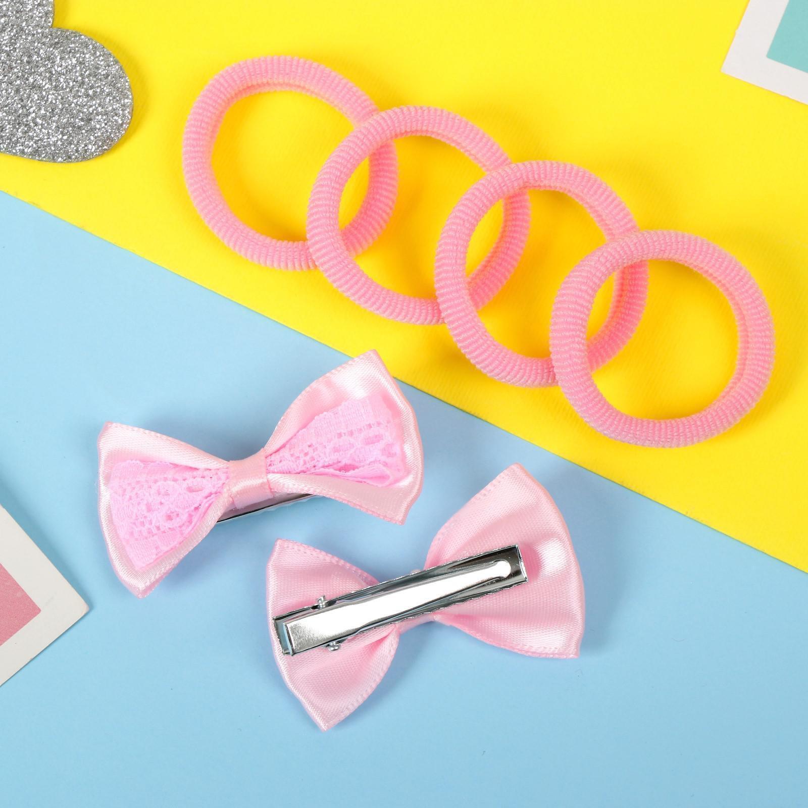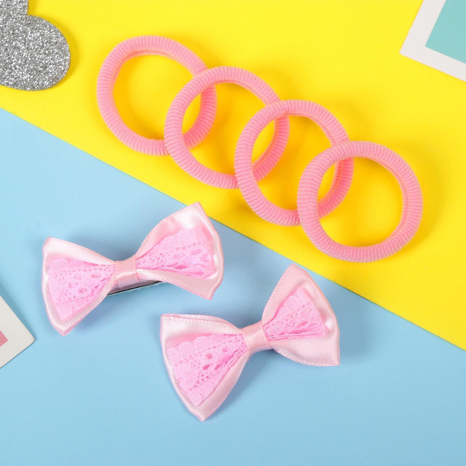 Набор для волос "Лада" (4 резинки, 2 зажима) кружевная вставка, розовый