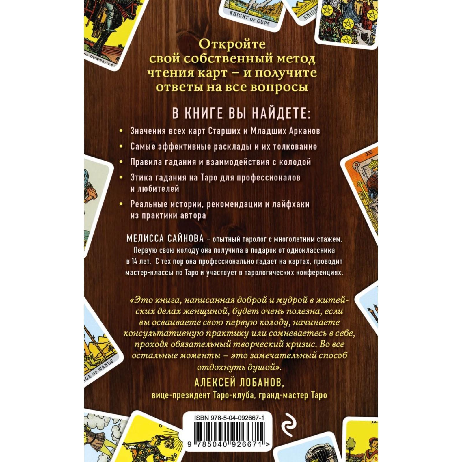 Эта книга для тех, кто хочет по-настоящему вникнуть в смысл Таро под руководством мудрого, опытного и дружелюбного наставника. Опытный таролог Мелисса Сайнова щедро делится своими знаниями о значениях карт и символике Таро, колодах, раскладах и правилах работы с картами, рассказывает увлекательные истории из собственного богатого личного опыта и развеивает суеверия и заблуждения, связанные с Таро.