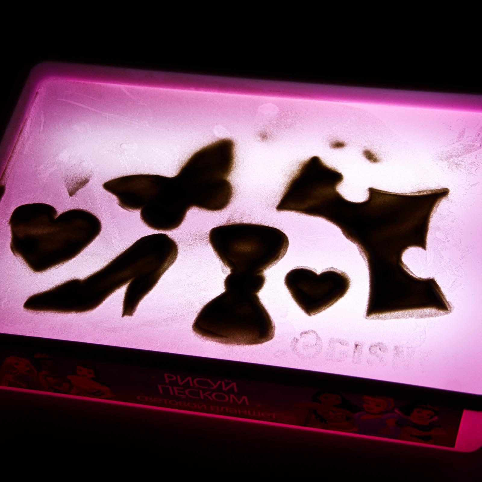 С помощью такой доски ребенок сможет научится рисовать песком. Для этого сыпем песок на предметы, формируя контур. Прочерчиваем дорожку от одного предмета к другому и украшаем ее камнями. Преобразовываем одну форму в другую касанием руки.