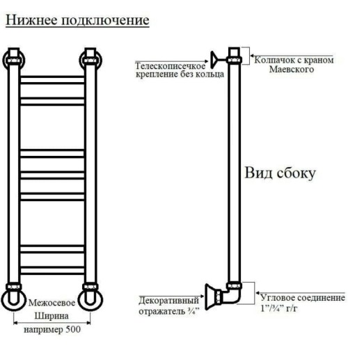 Полотенцесушитель Маргроид Вид 6 нижнее подключение, форма - лесенка, для любого по стилю интерьера ванной комнаты.