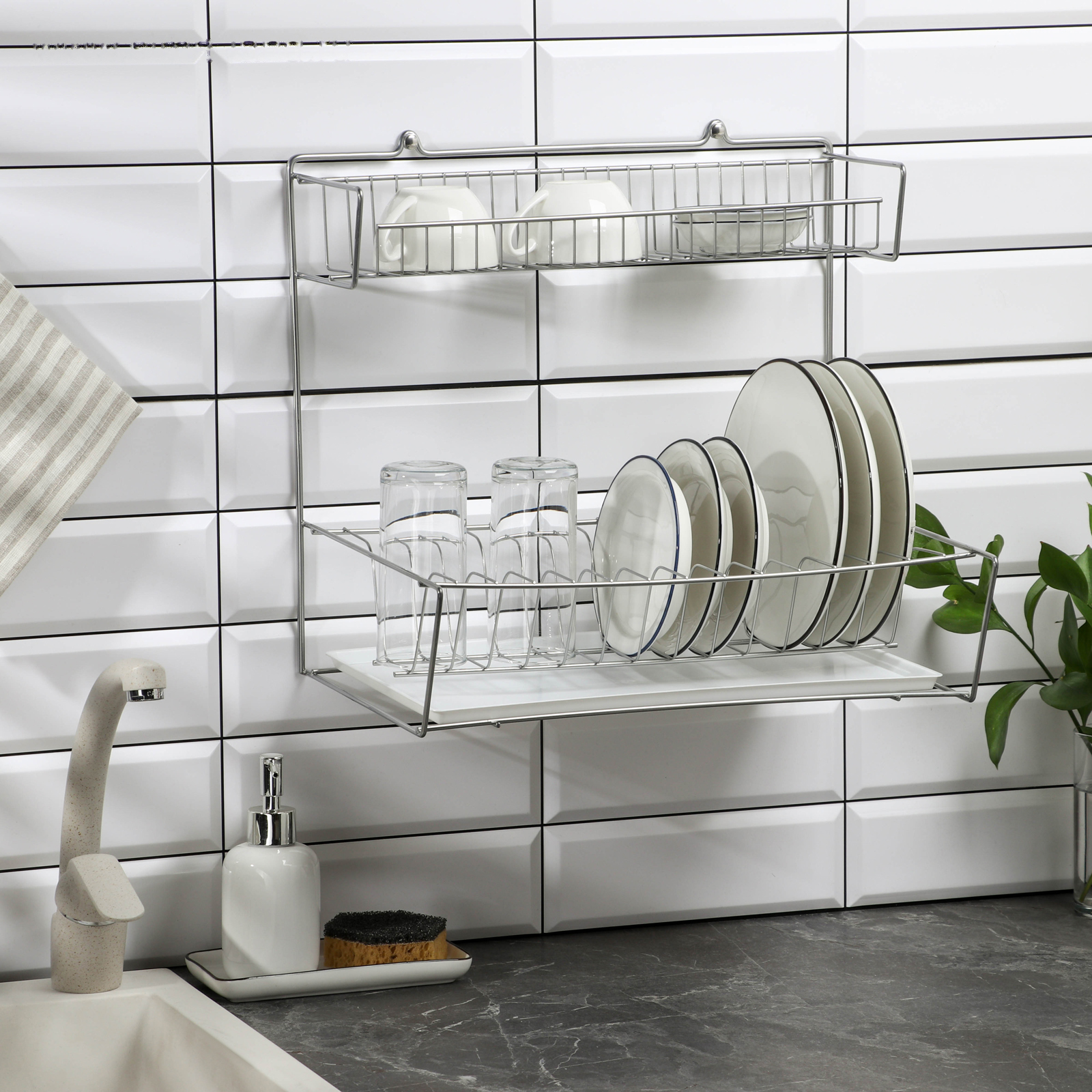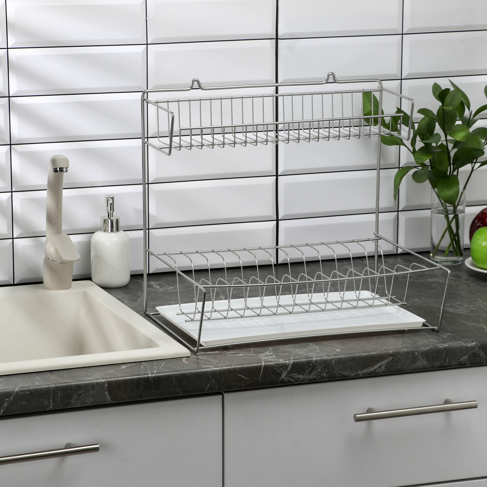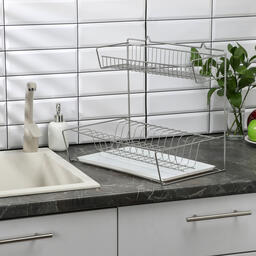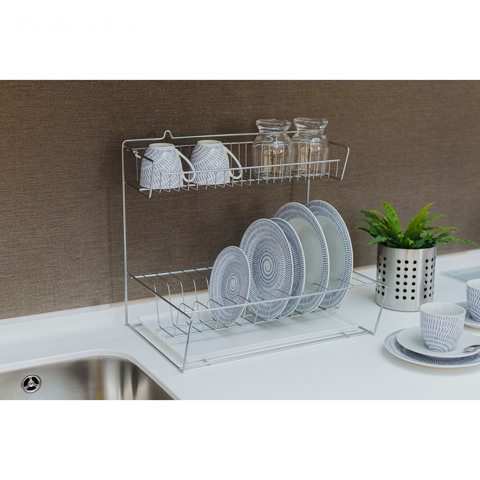 Сушилка для посуды с поддоном 2-х ярусная, настольно-настенная, 40×29×40 см, цвет хром