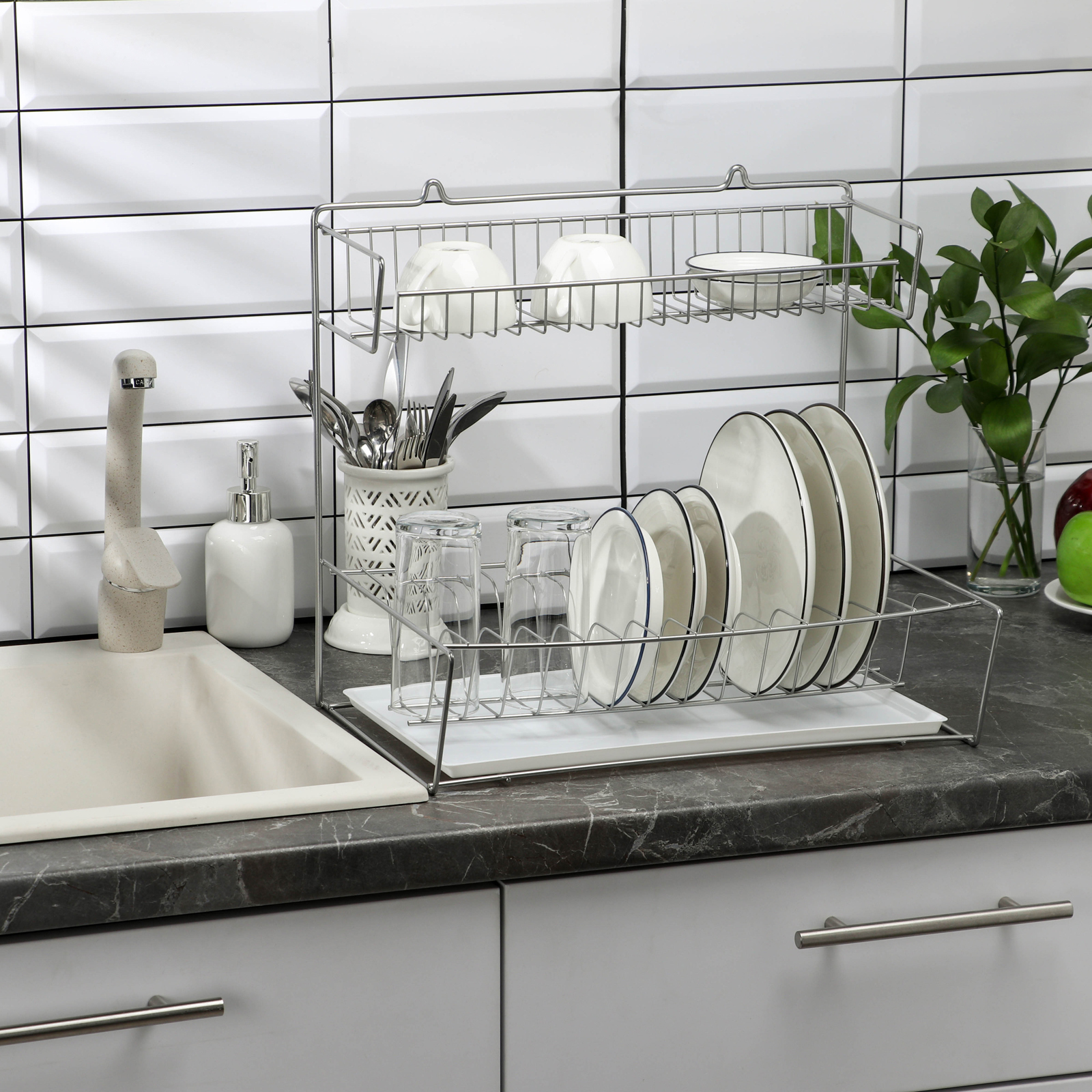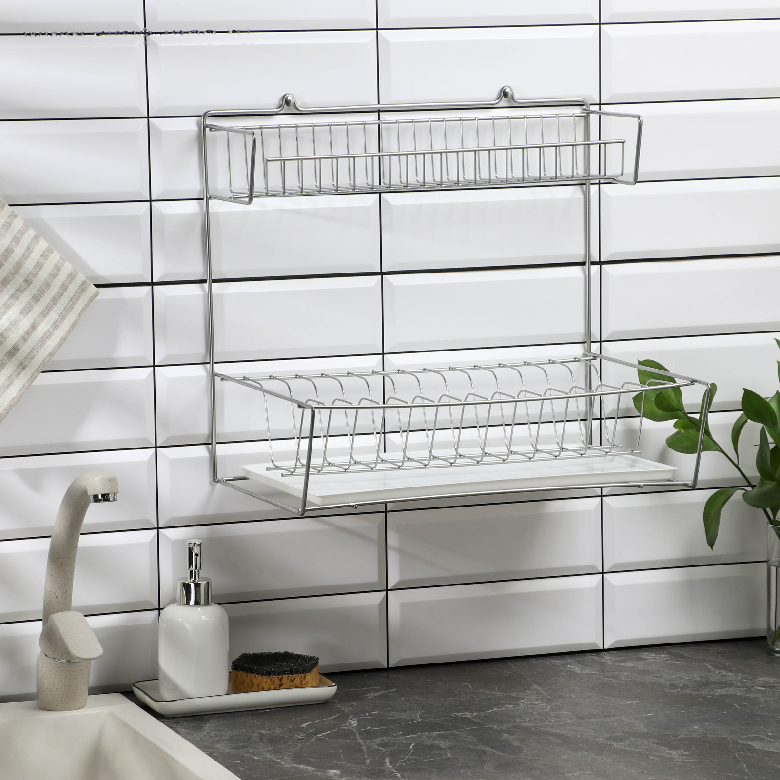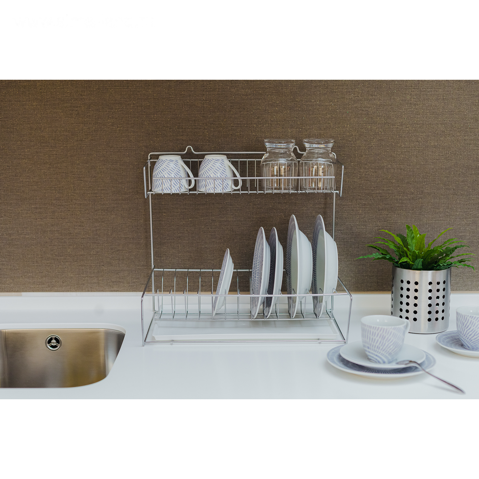 Сушилка для посуды с поддоном 2-х ярусная, настольно-настенная, 40×29×40 см, цвет хром