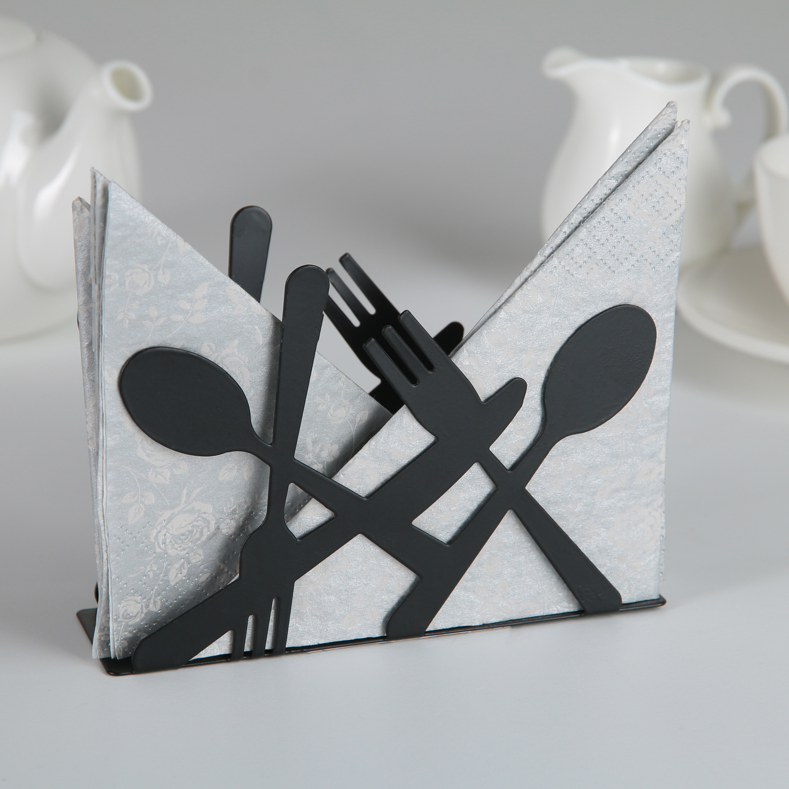 Салфетница Доляна «Приборы», 13,5×4,5×9,5 см, цвет чёрный