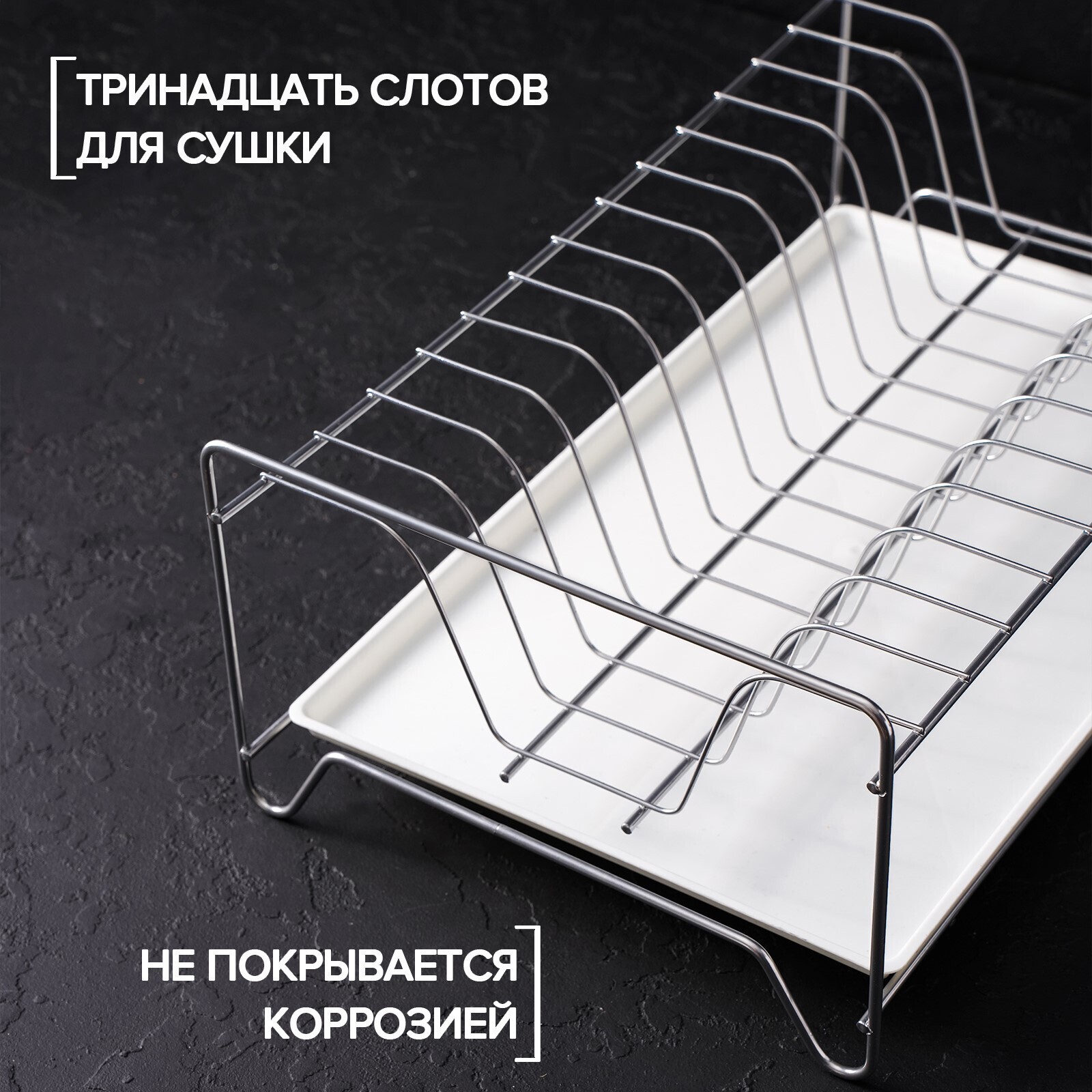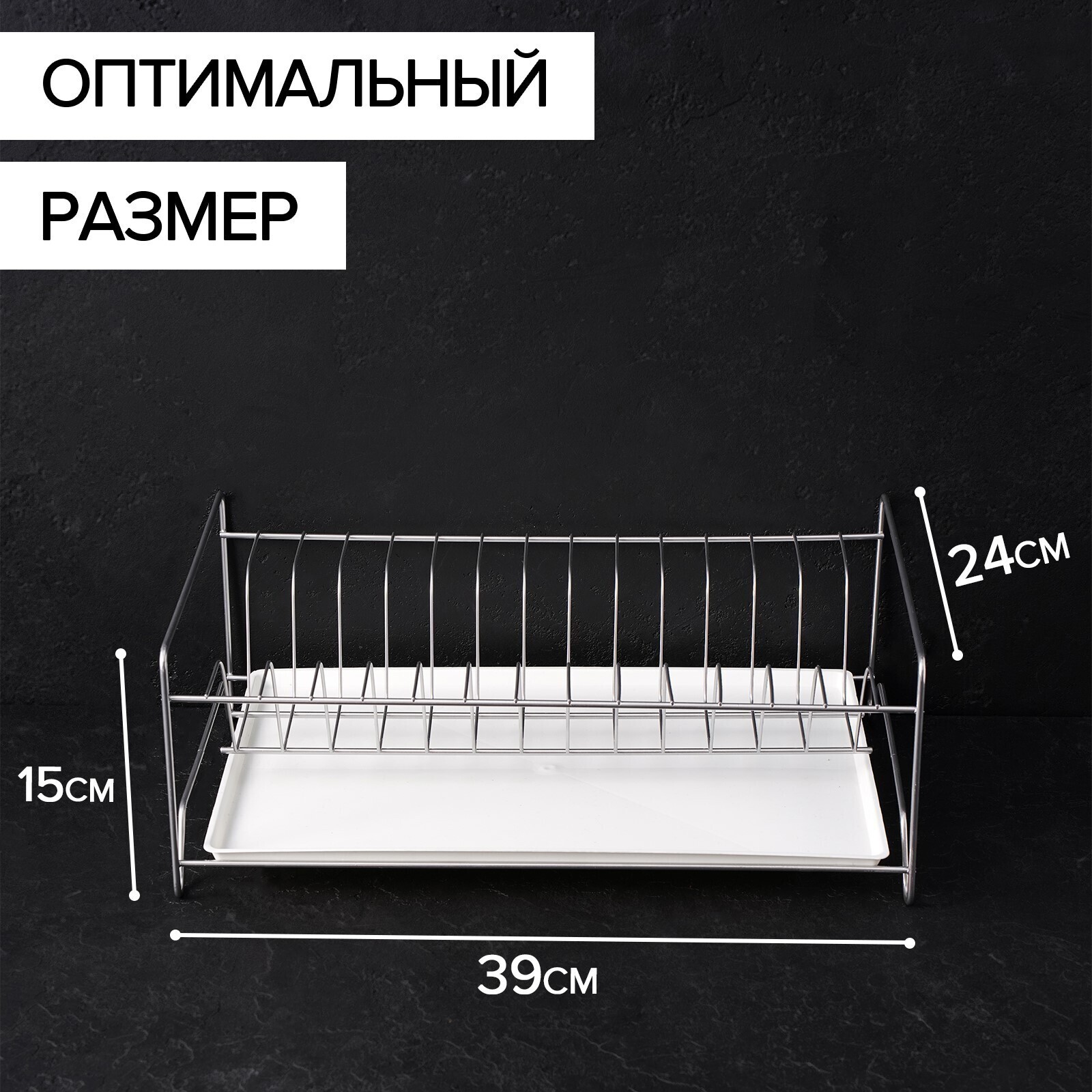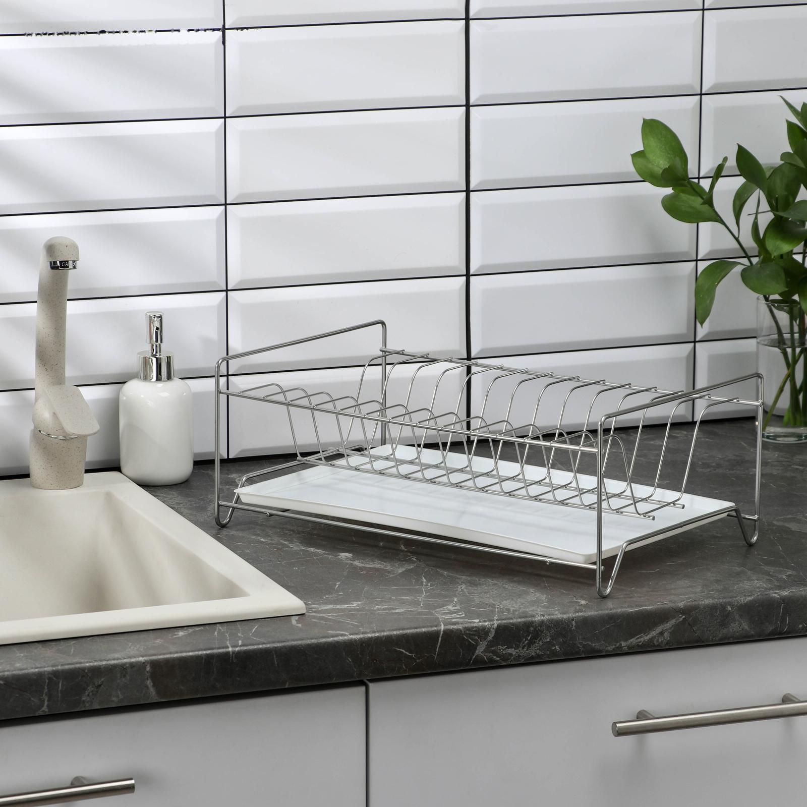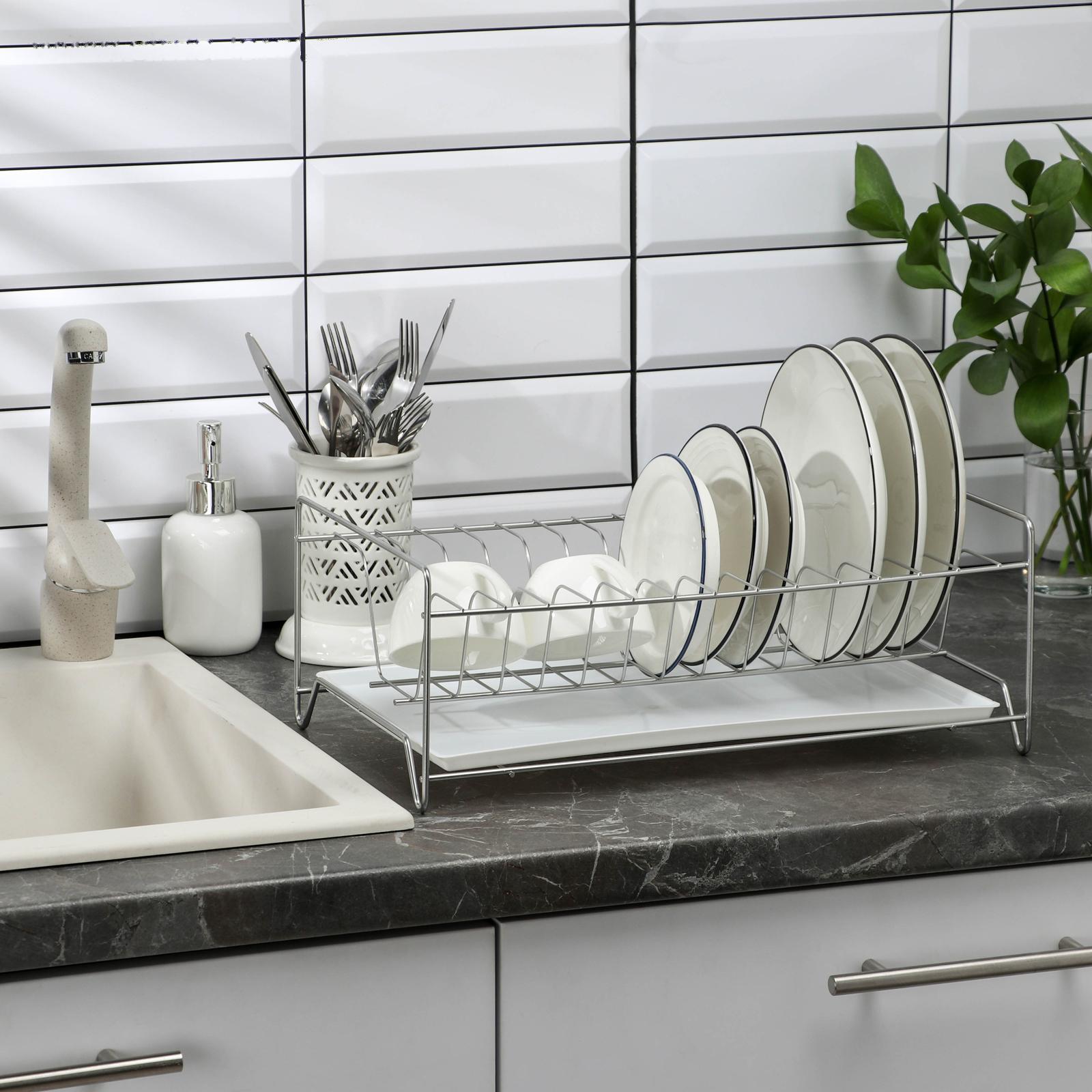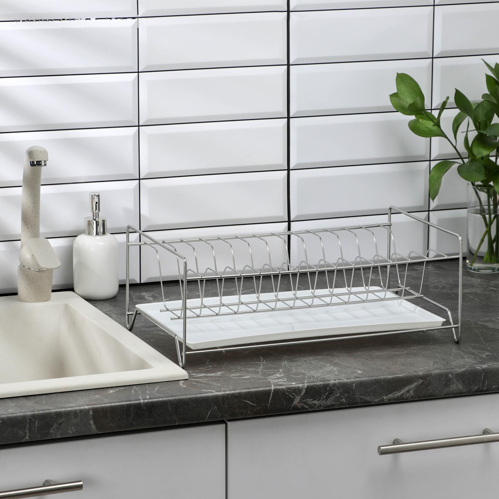 Сушилка для посуды с поддоном, 24×39×15 см, цвет хром
