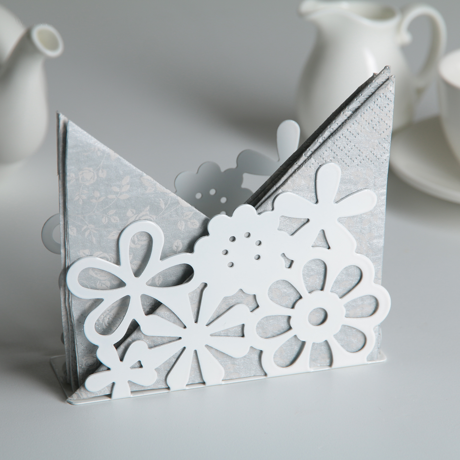 Салфетница «Цветы», 13×4,5×9 см, цвет белый