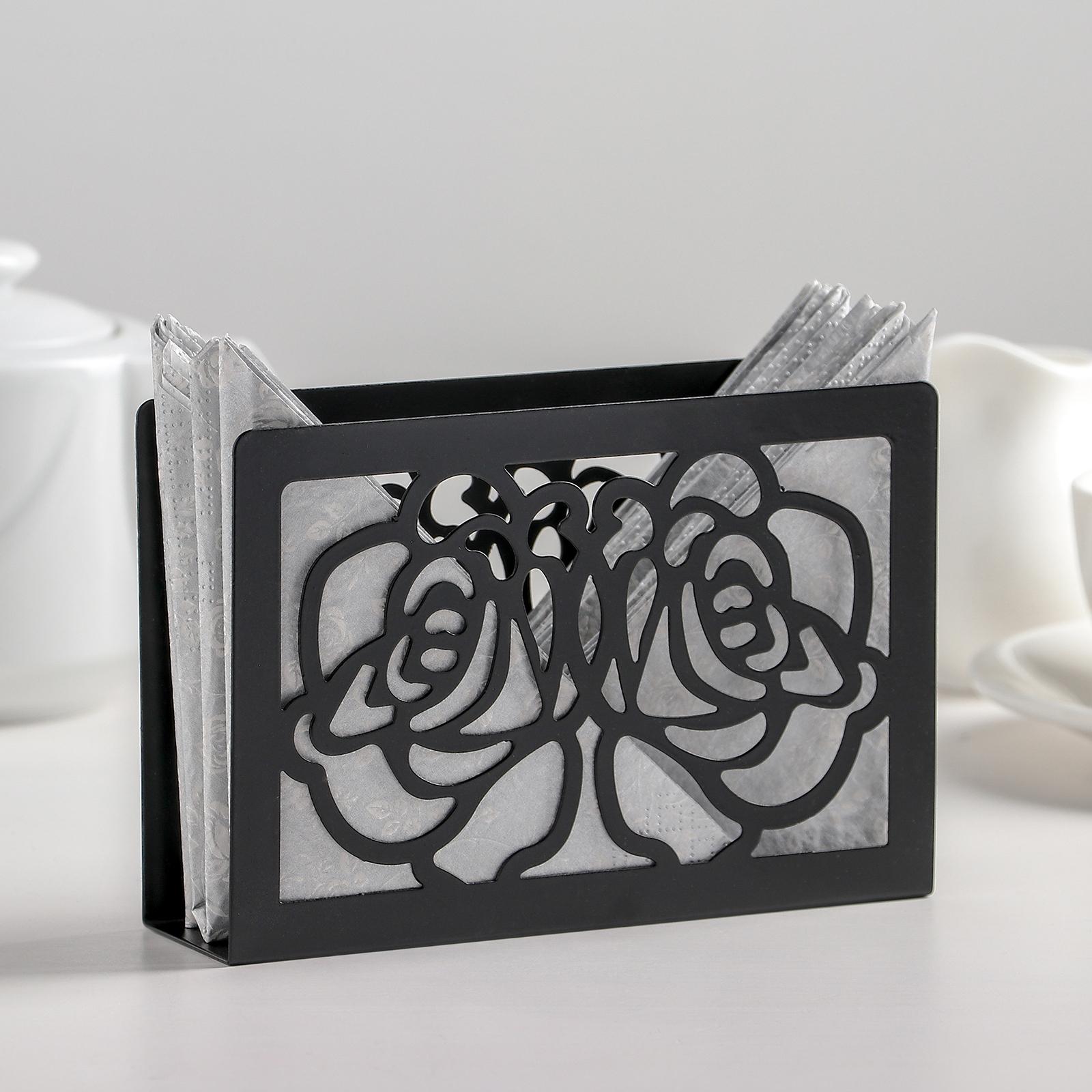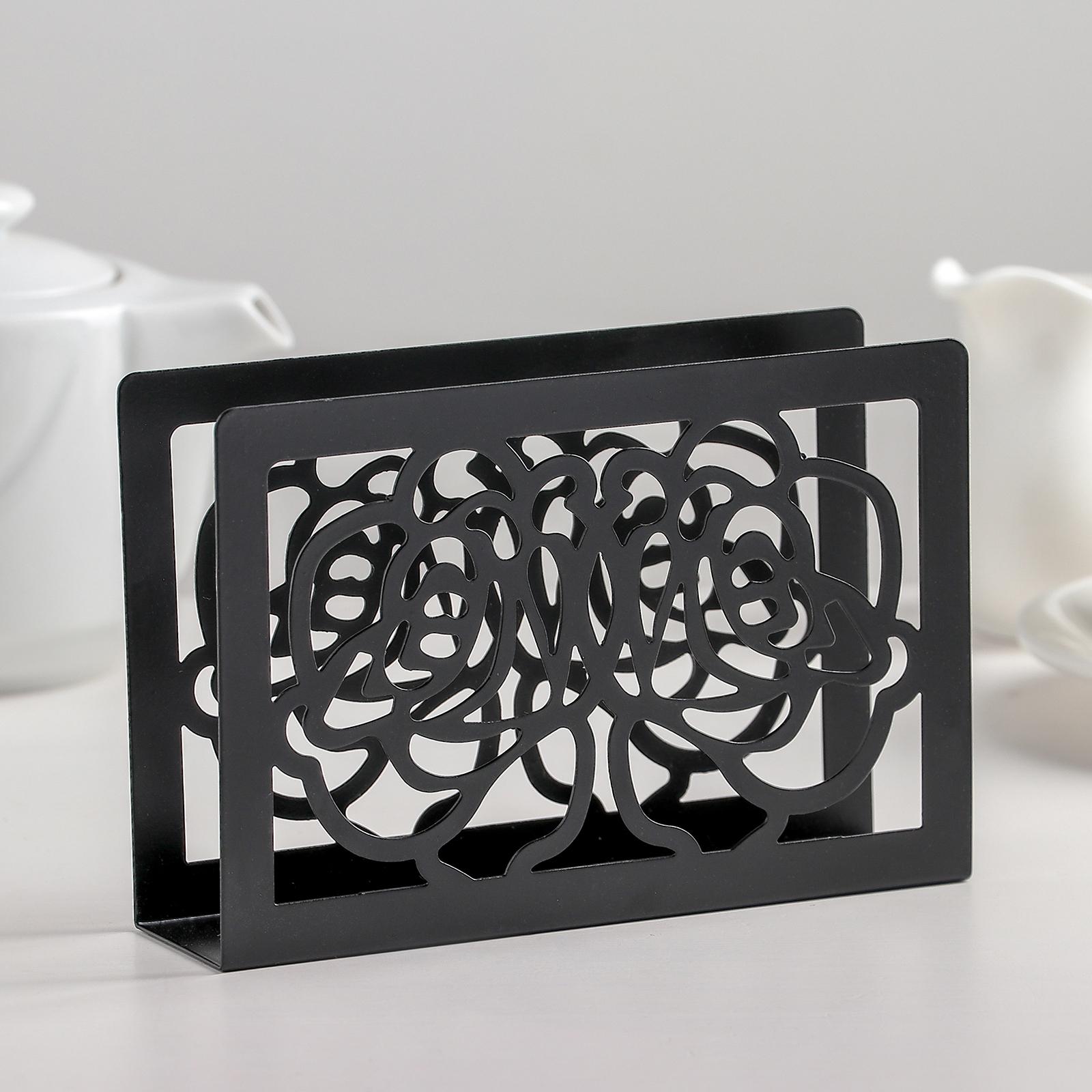 Салфетница «Цветы», 15×4×10 см, цвет чёрный