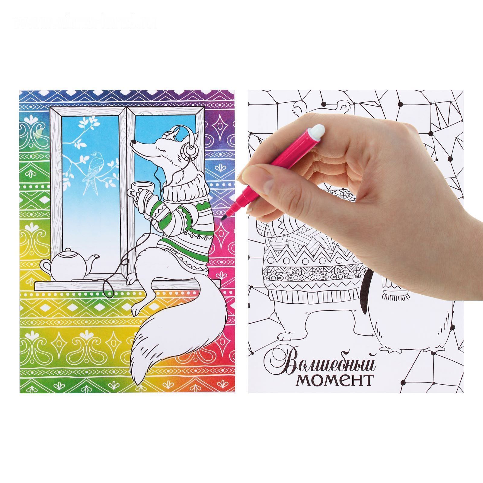 Раскраска - антистресс, открытки «Таинственный мир зверей» А6