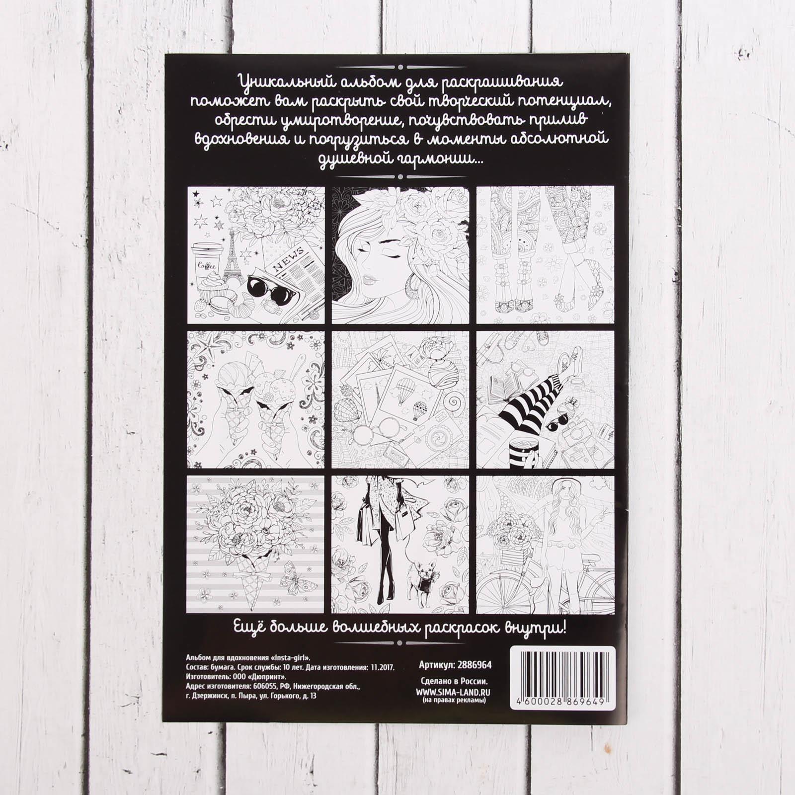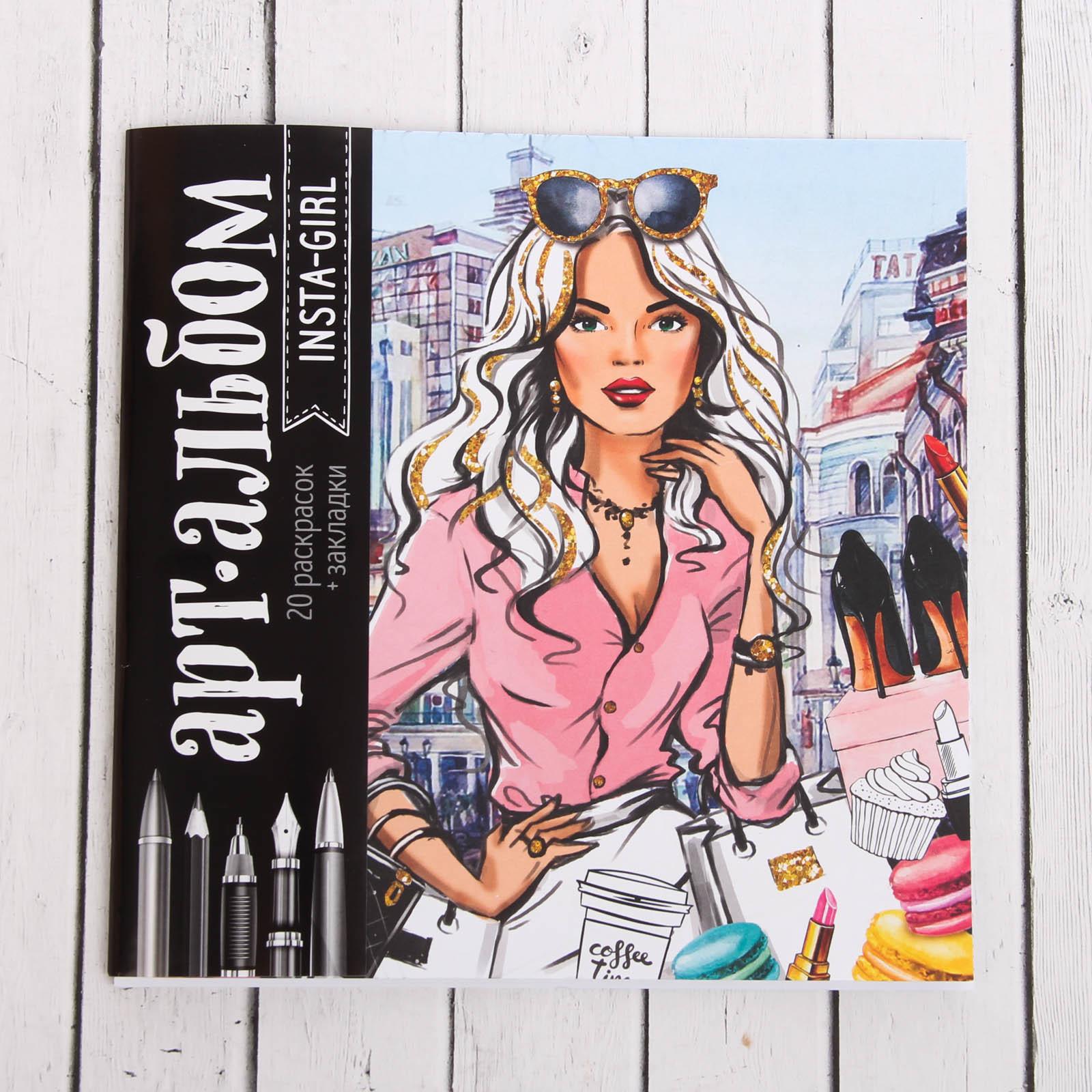 Раскраска - антистресс, альбом Insta-girl, 20 стр.
