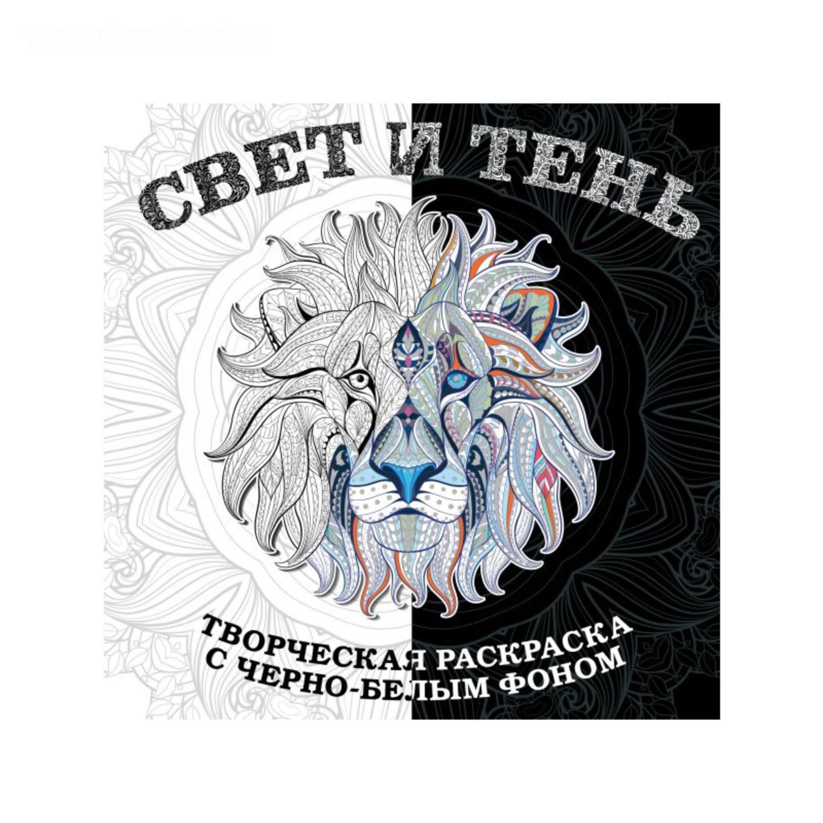 Арт-терапи. Свет и тень. Творческая раскраска с черно-белым фоном