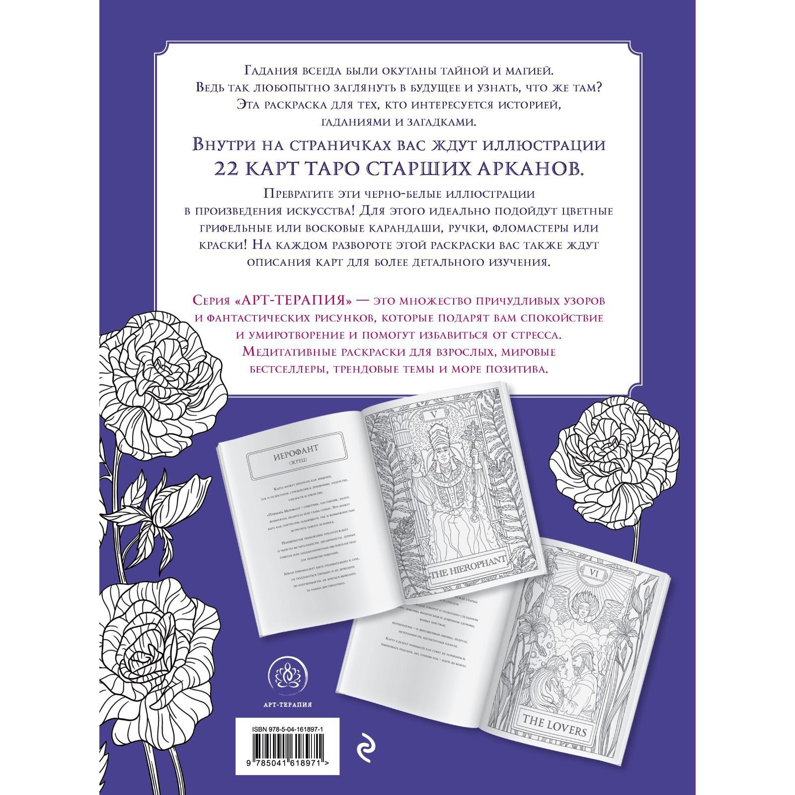 Для раскраски взяты образы ТАРО Старших Арканов, описание каждой карты на обороте для более детального изучения. Страницы выполнены из плотной бумаги, поэтому вы можете использовать любые художественные инструменты, а большой формат раскраски поможет разглядеть мельчайшие детали._x000D_