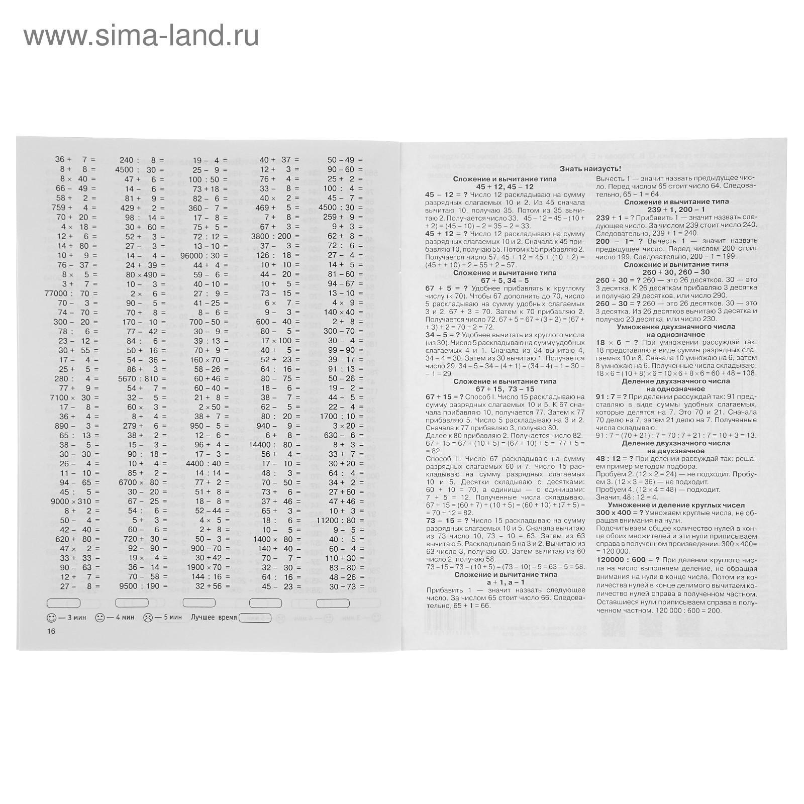 В сборник вошли базовые приёмы быстрого счёта и алгоритмы вычислений для 1–4-го классов. Навык позволит освободить рабочую память для более сложных логических заданий.