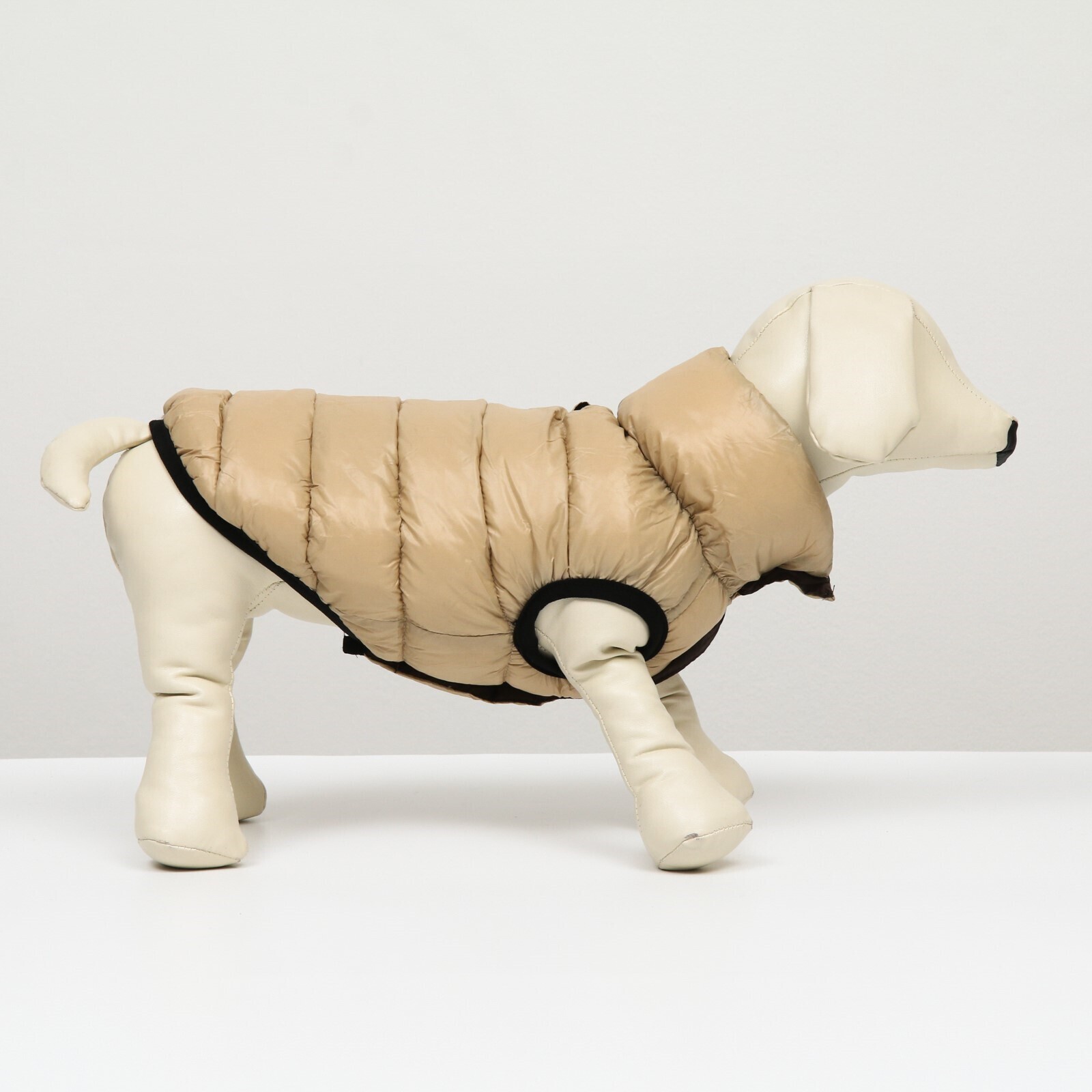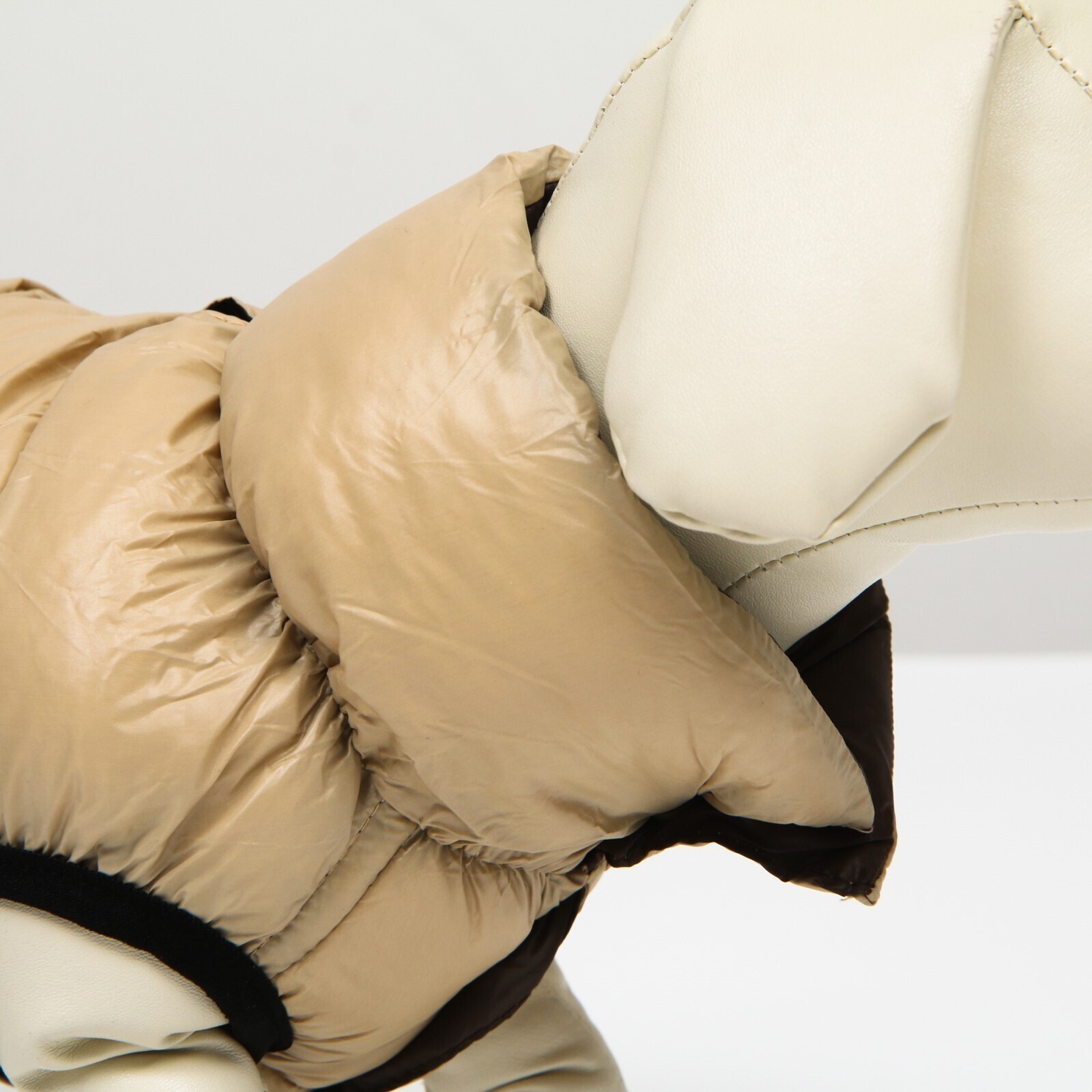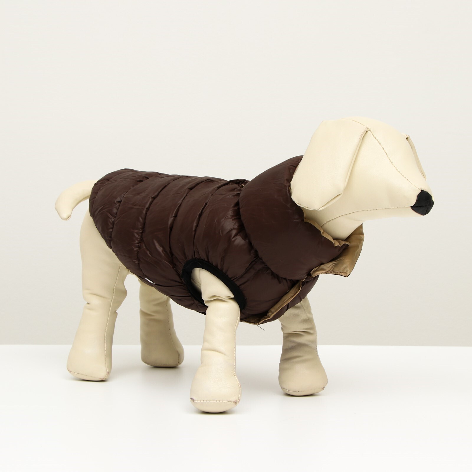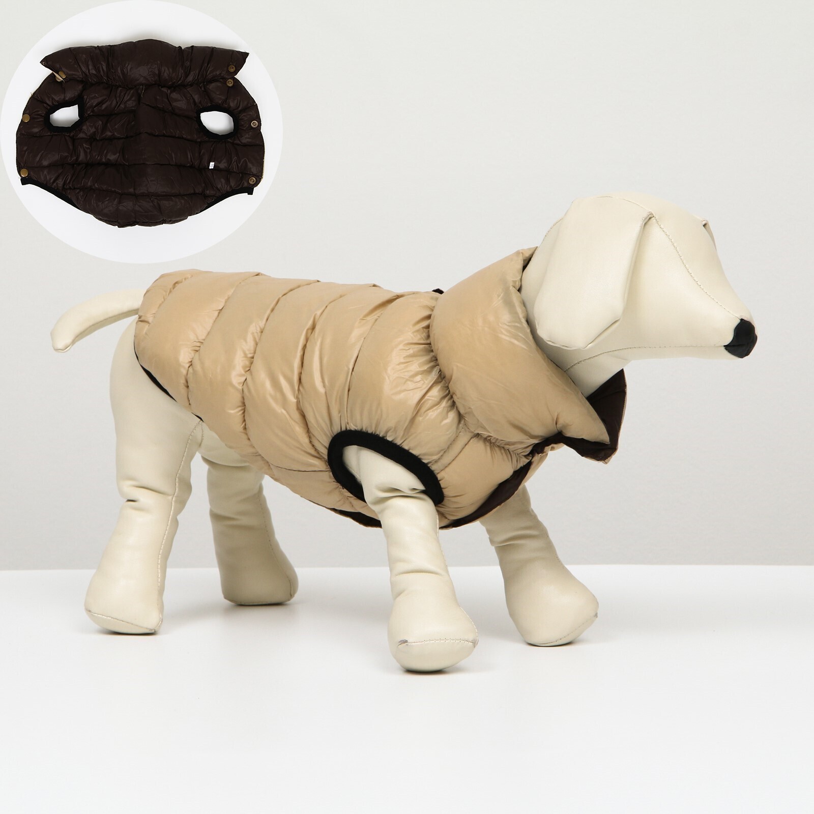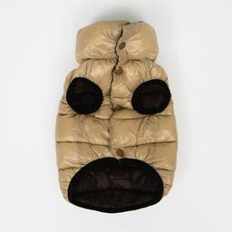 Куртка для собак двухсторонняя с воротником, ДС 50, ОШ 38 , ОГ 72, бежевая/коричневая