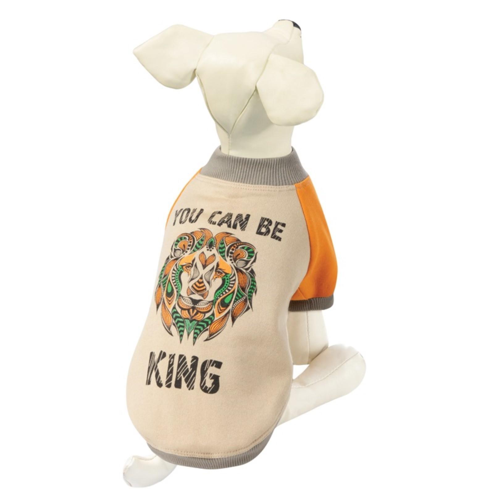 Толстовка "Царь зверей" - это стильный и функциональный аксессуар для собак на каждый день. Изделие имеет оригинальный дизайн и модный принт на спине. Толстовка надевается через голову. На рукавах предусмотрены удобные резинки, фиксирующие изделие на лапах животного, а универсальный фасон не стесняет движений питомца во время прогулки.Цвет: бежевый.