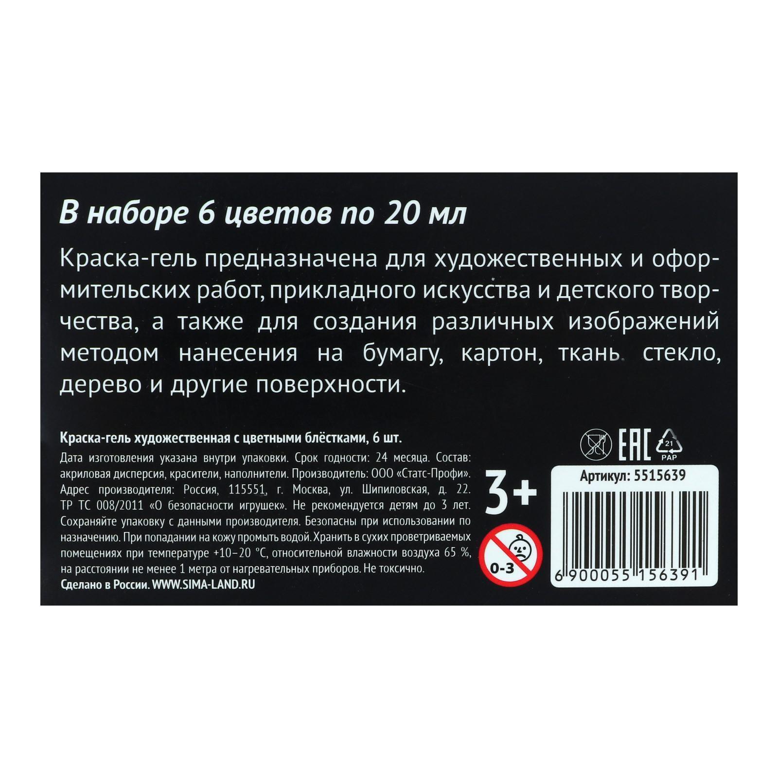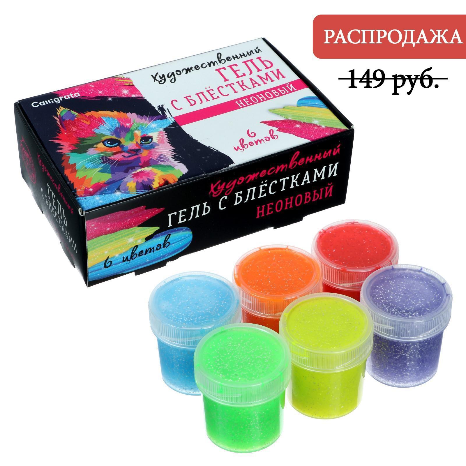 Гель с блёстками в банке набор 6 цв по 20 мл Calligrata Neon