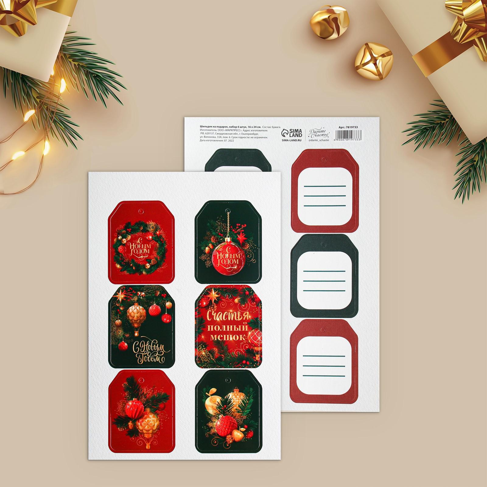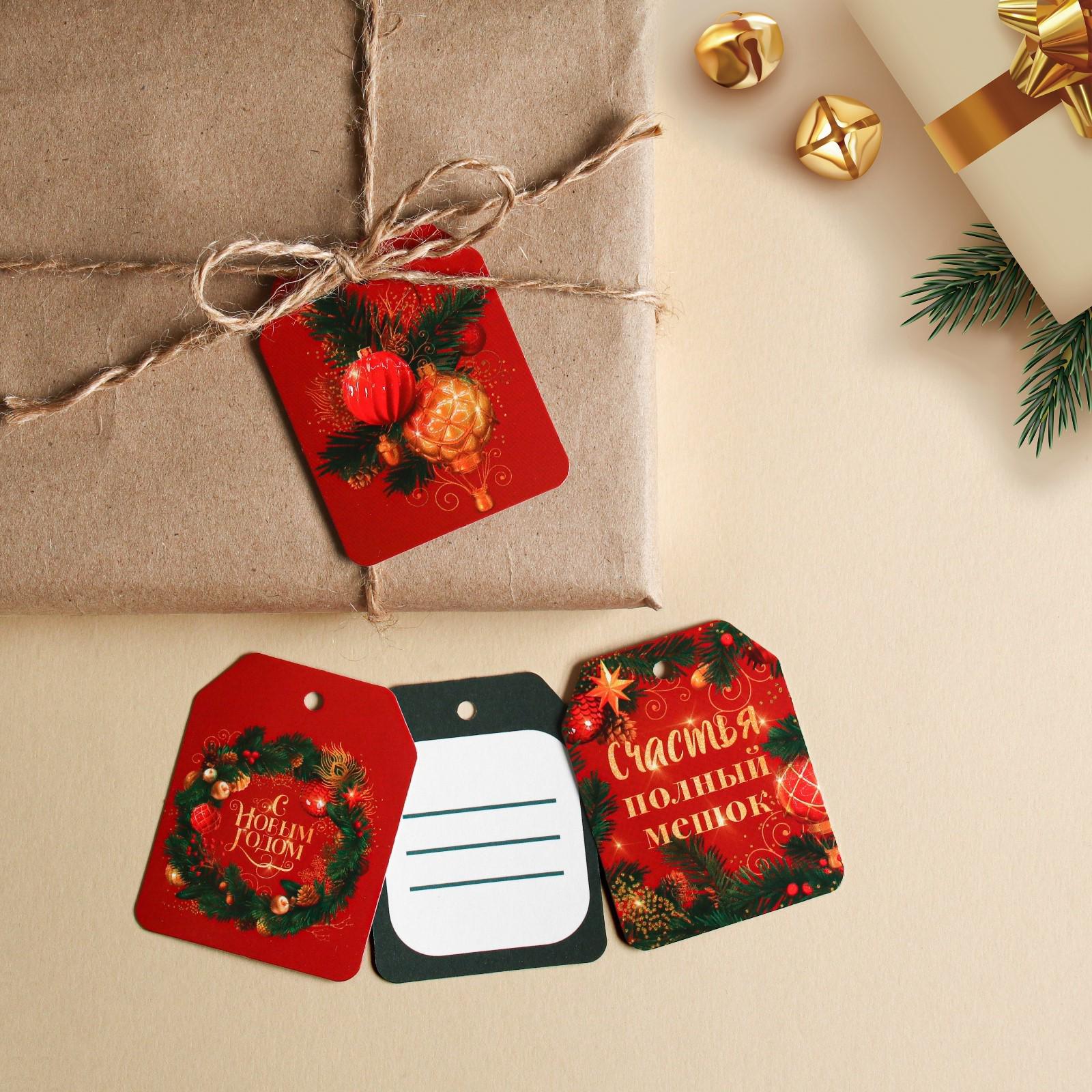 Шильдик на подарок «Счастье», набор 6 штук, ёлочные шары, 16 × 24 см