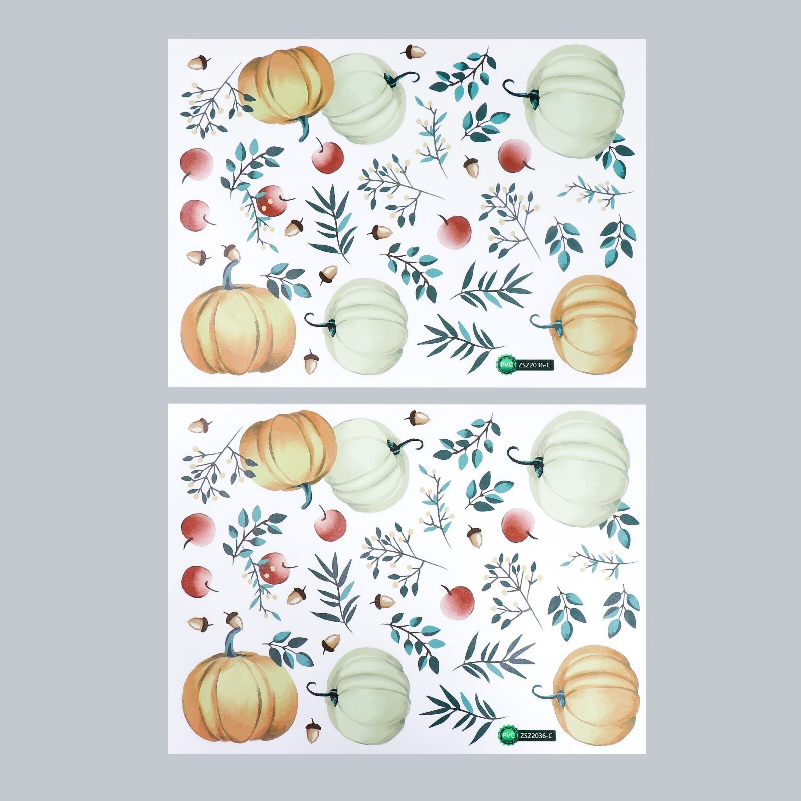 Наклейка пластик интерьерная цветная "Тыквы и яблоки" набор 2 листа 30х40 см