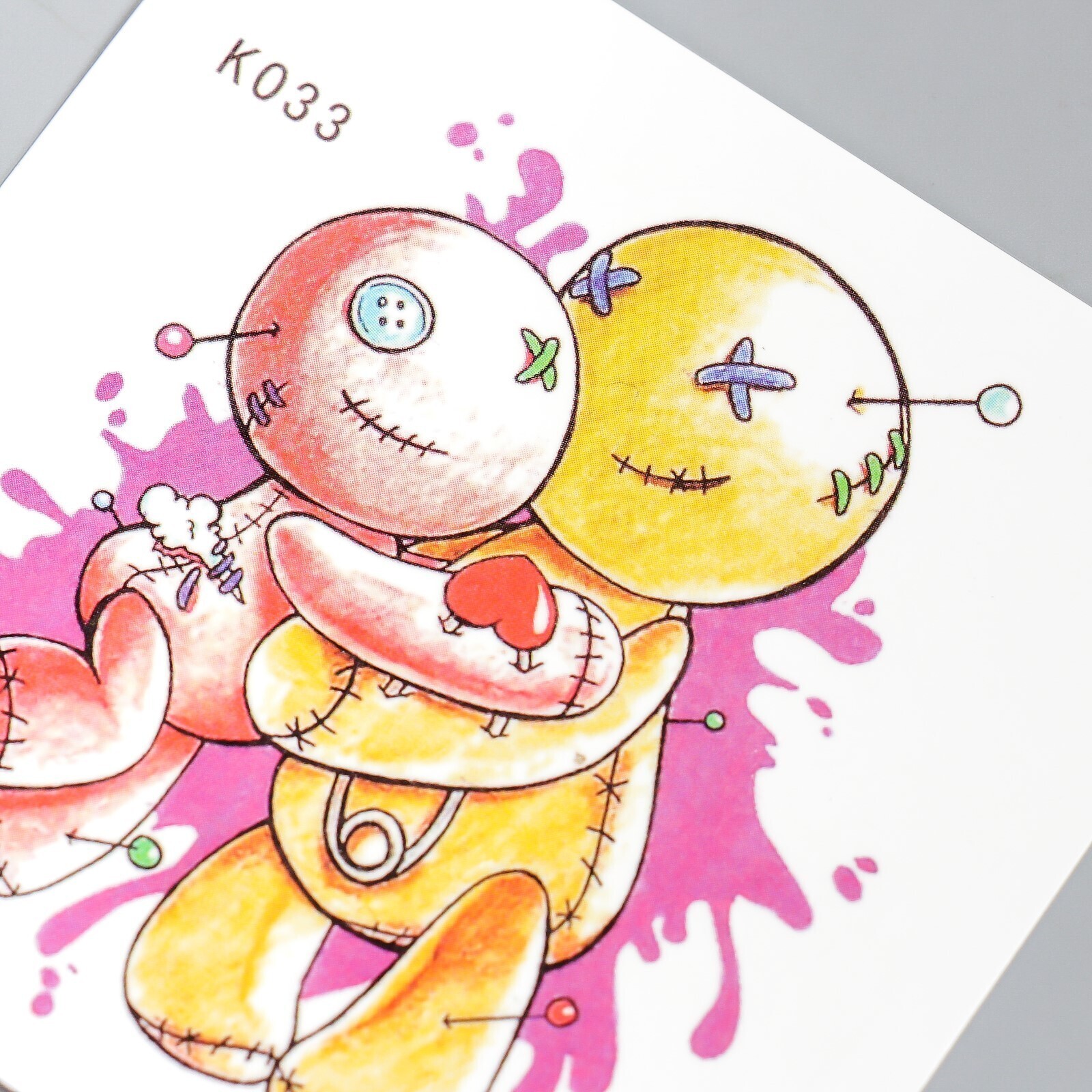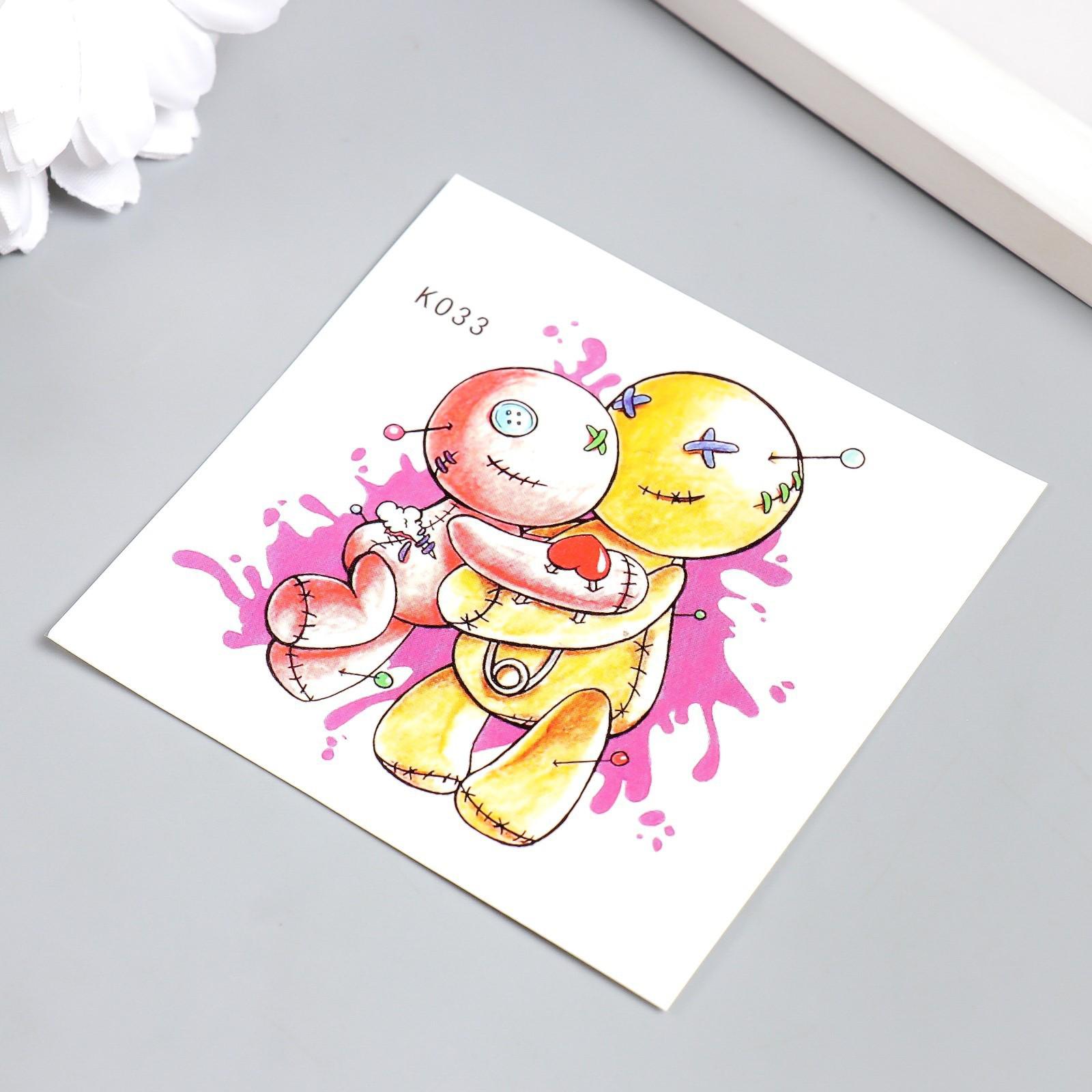 Татуировка на тело цветная "Тряпичные куколки" 8х8 см