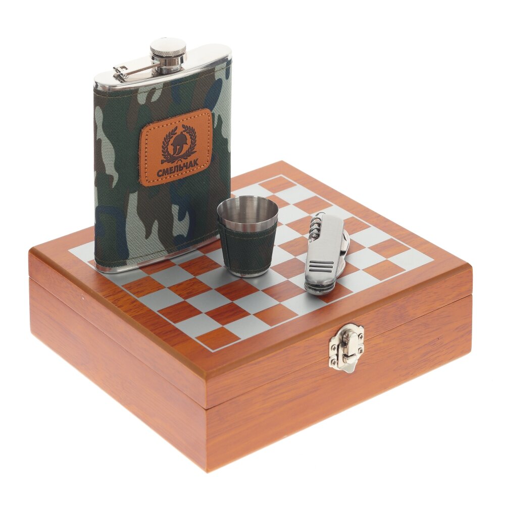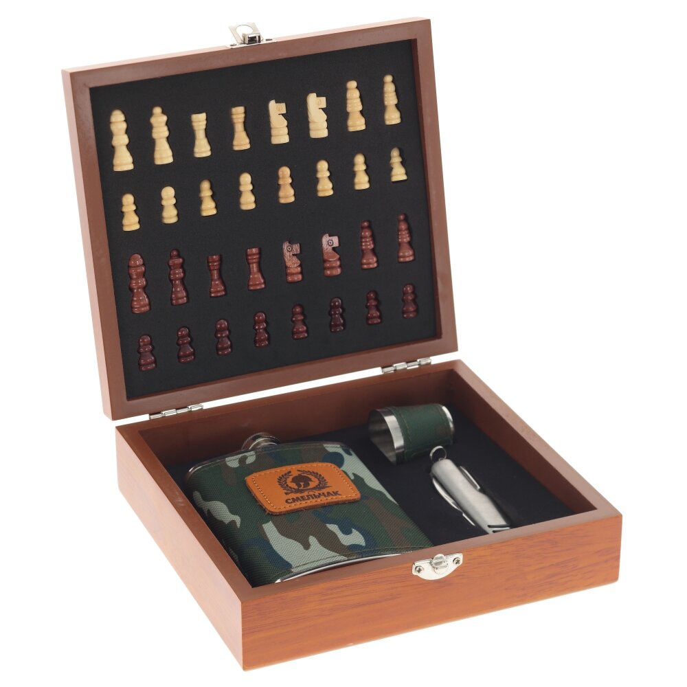 Набор подарочный (шахматы, фляжка 250 мл, стопка, МФУ нож), L20 W19 H6 см