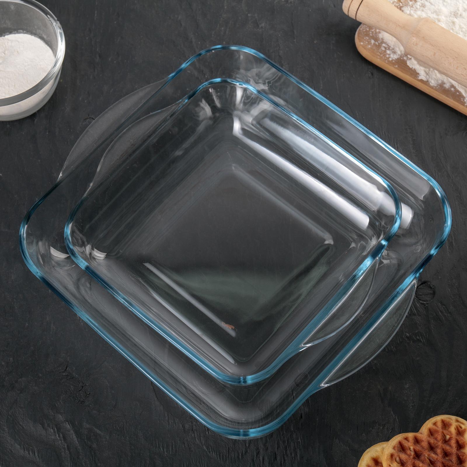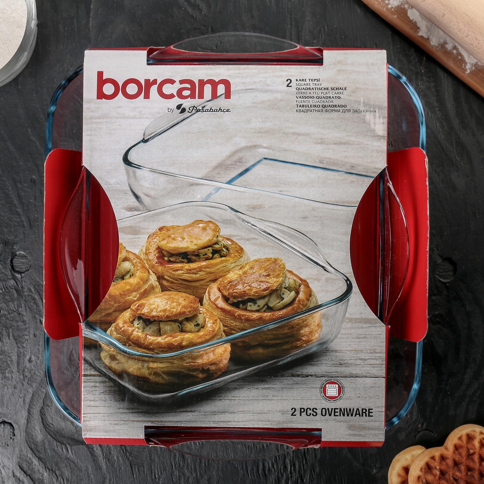 Набор квадратной посуды из жаропрочного стекла для запекания Borcam, 2 предмета: 3,2 л, 1,95 л