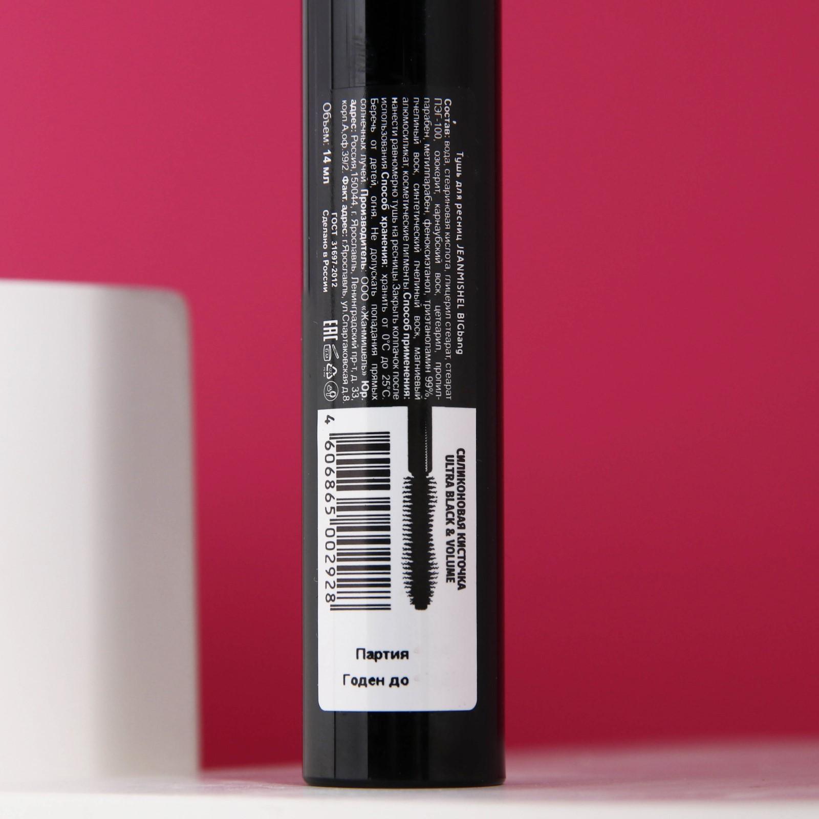 Тушь для ресниц объемная, Jean Mishel, BIGbang черная, силиконовая кисть, 14 мл