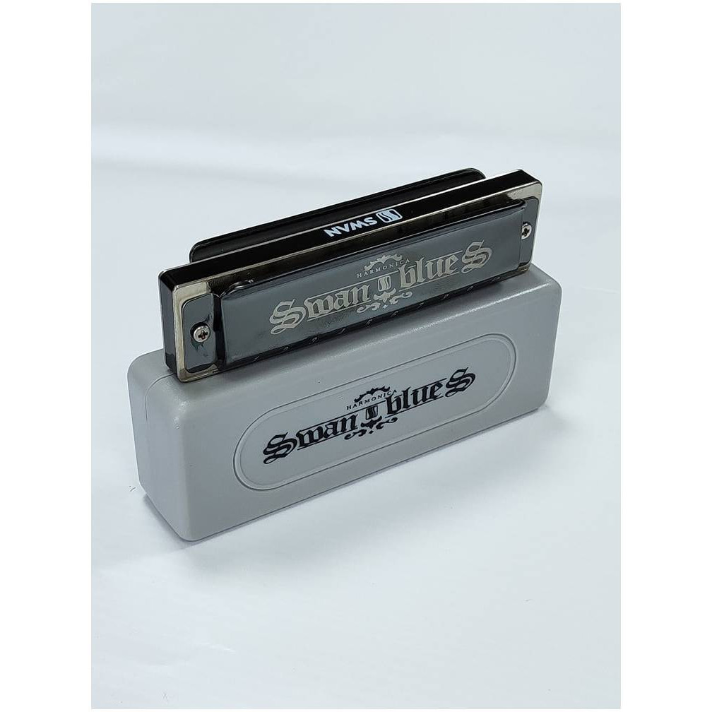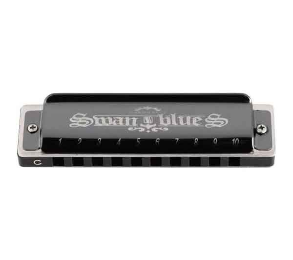 Классическая блюзовая губная гармошка Swan SW1020H-BK. Пластиковый корпус инструмента выполнен в черном цвете, крышки хромированные, также покрашенные в черный цвет.